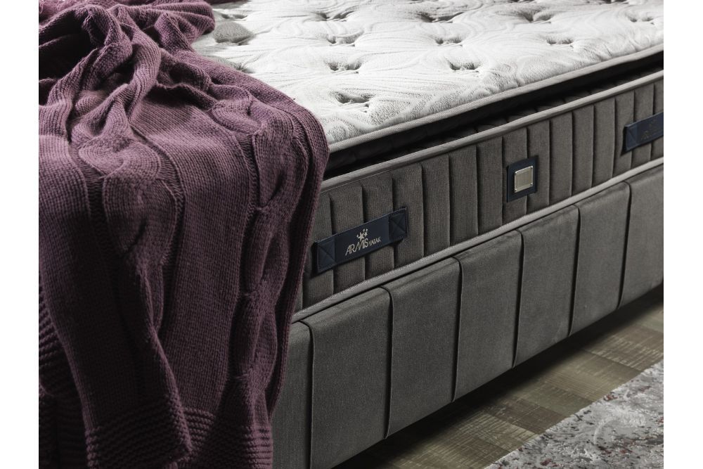 Njegova jezgra, prožeta slojevima guste Hyper-Soft pjene i čvrste džepićaste opružne jezgre, stvara osjećaj precizne potpore. Tu nema kolebanja – tijelo se spušta na čistu sigurnost, kralježnica odmara u idealnom poravnanju, a um tone bez otpora.