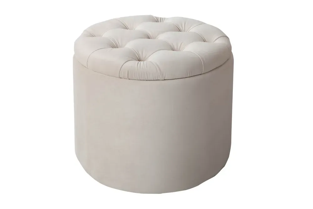 Barock Beige Tabure spaja elegantan izgled i praktičnu funkcionalnost u jednom komadu. Mekani bež velvet unosi toplinu i sofisticiranost u prostor, dok skriveni pretinac omogućuje uredno odlaganje sitnica bez narušavanja estetike.