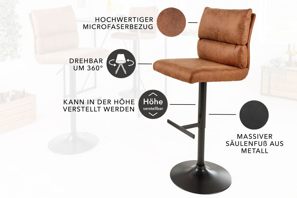 Ova stolica, sa svojim dimenzijama 45 cm x 100-121 cm x 58 cm (ŠxVxD), odiše elegancijom i sofisticiranošću. Sjedalo, koje mjeri 42 cm x 64-85 cm x 40 cm (ŠxVxD), pruža savršenu udobnost dok visina naslona od 37 cm nudi potporu za vaša leđa, osiguravajući opuštanje. Visina oslonca za noge varira od 21 cm do 42 cm, prilagođavajući se vašim potrebama, dok stabilna baza promjera 45 cm garantira sigurnost i stabilnost. Boje su pomno odabrane da stvore harmoničan i topao ambijent. Sjedalo u antik smeđoj boji donosi retro šarm, dok crni okvir od pulverbeschichtetog metala dodaje moderni dodir, stvarajući savršen kontrast. Materijali koji čine ovu stolicu dodatno doprinose njenom luksuznom izgledu. Sjedalo je presvučeno mikrofibrom koji se sastoji od 10% poliestera, pružajući mekoću na dodir i dugotrajnu izdržljivost. Crni okvir od pulverbeschichtetog metala osigurava čvrstoću i stabilnost, podržavajući maksimalno opterećenje do otprilike 120 kg. Kombinacija ovih karakteristika čini ovu stolicu idealnim izborom za svaki moderni prostor, gdje estetika i funkcionalnost idu ruku pod ruku. Udobnost koju pruža, zajedno s elegantnim dizajnom, poziva vas da se zavalite i uživate u trenutku.