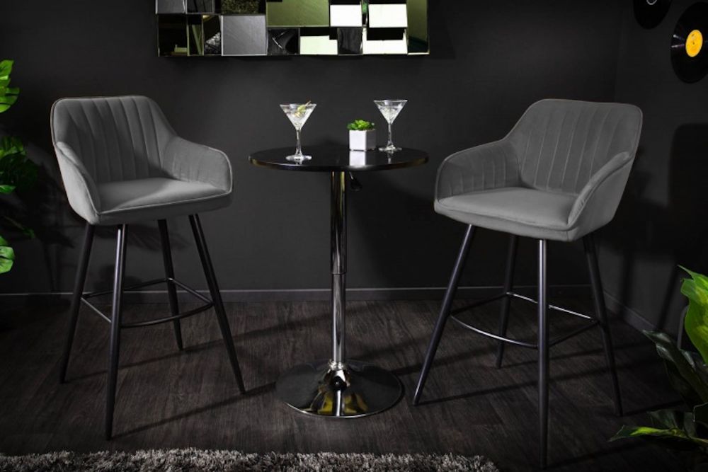 Ovaj bar stolac utjelovljuje savršenu ravnotežu između modernog dizajna i luksuzne udobnosti. Sjedalo, presvučeno profinjenim baršunom, nudi neusporedivu mekoću na dodir, pružajući dozu elegancije koja podiže svaki interijer. Minimalistički dizajn naglašava čiste linije i funkcionalnost, dok naslon i sjedalo ergonomskog oblika nude vrhunsku podršku za leđa. Njegova sofisticirana metalna baza osigurava stabilnost i trajnost, dok dodatna podloga za noge omogućava opuštanje i uživanje u svakom trenutku sjedenja. Ovaj komad, sa svojom suptilnom paletom boja i prozračnim oblikom, donosi osjećaj prostranosti i elegancije u svaki prostor.