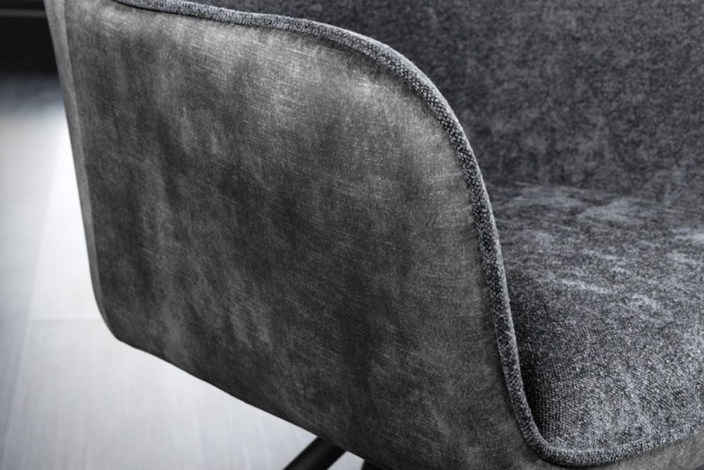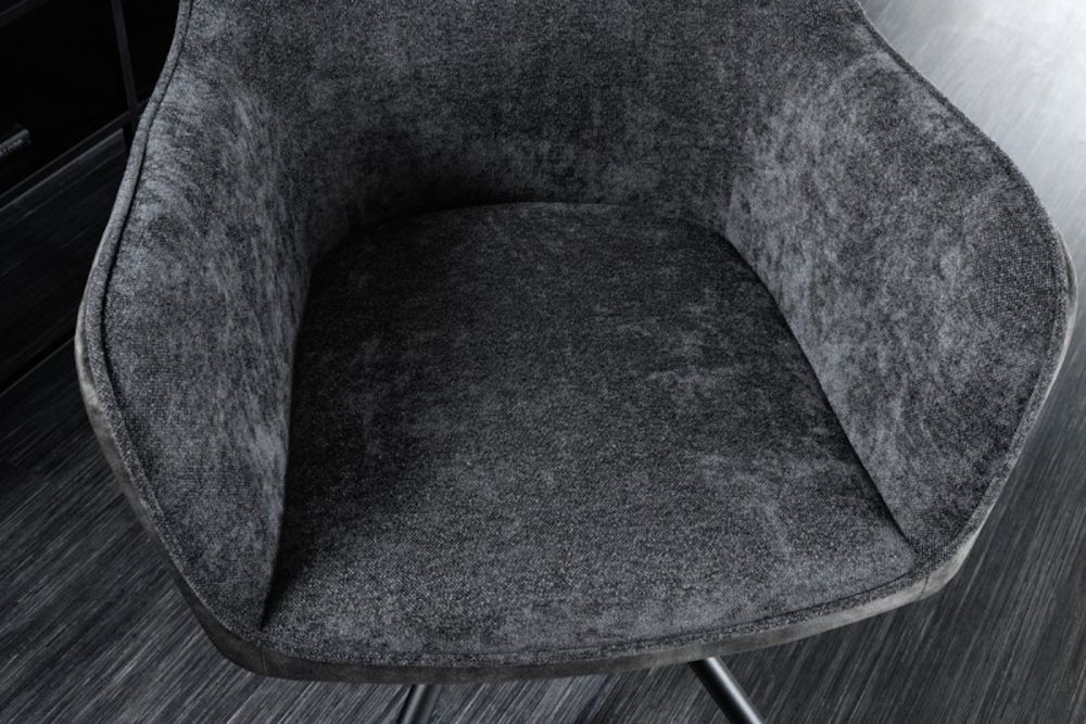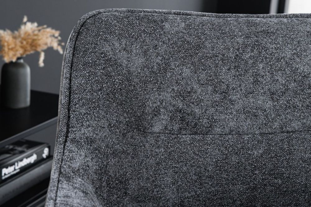 Ova elegantna dizajnerska stolica donosi spoj luksuza i funkcionalnosti, pretvarajući svaki prostor u oazu udobnosti i stila. Prekriven finom tkaninom u tamno sivoj boji, odiše sofisticiranošću koja odmah privlači pažnju. Njegovo savršeno oblikovano sjedalo i ergonomski naslon pružaju neusporedivu udobnost, dok okretni mehanizam omogućava lakoću kretanja i fleksibilnost u svakodnevnim aktivnostima. Suptilni metalni okvir pruža čvrstu, ali diskretnu podršku, savršeno se uklapajući u modernu estetiku prostora. Neutralne boje omogućuju lako uklapanje u različite stilove interijera, dok ovaj komad namještaja postaje simbol suptilnog luksuza i neprolazne elegancije.
