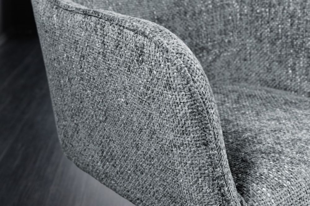 Ova elegantna dizajnerska stolica donosi spoj luksuza i funkcionalnosti, pretvarajući svaki prostor u oazu udobnosti i stila. Prekriven finom tkaninom u sivoj boji, odiše sofisticiranošću koja odmah privlači pažnju. Njegovo savršeno oblikovano sjedalo i ergonomski naslon pružaju neusporedivu udobnost, dok okretni mehanizam omogućava lakoću kretanja i fleksibilnost u svakodnevnim aktivnostima. Suptilni metalni okvir pruža čvrstu, ali diskretnu podršku, savršeno se uklapajući u modernu estetiku prostora. Neutralne boje omogućuju lako uklapanje u različite stilove interijera, dok ovaj komad namještaja postaje simbol suptilnog luksuza i neprolazne elegancije.