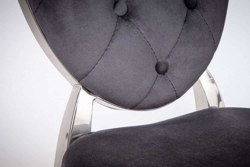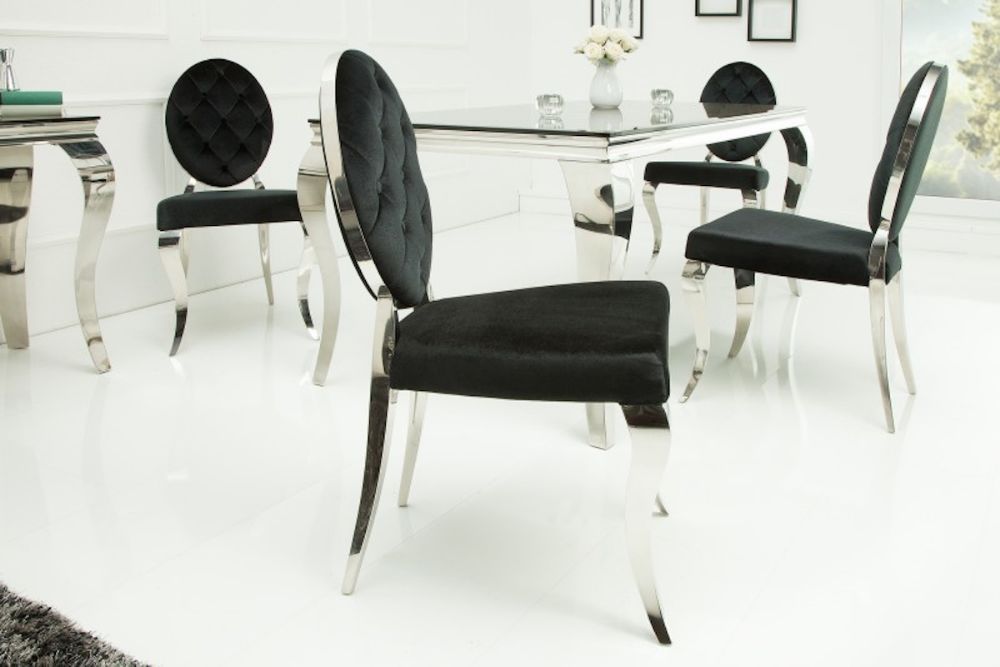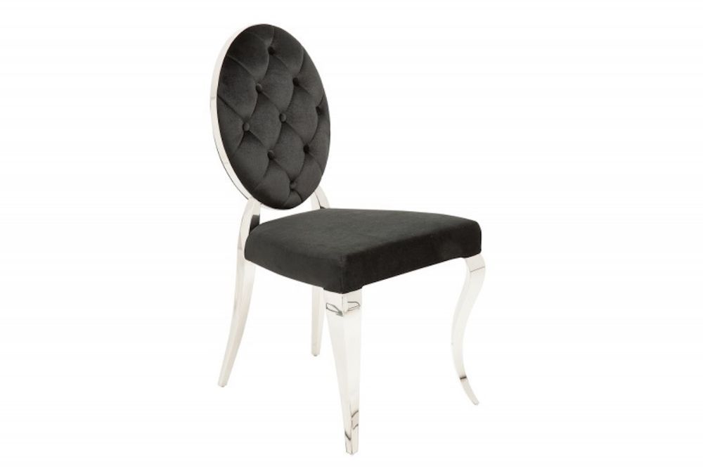 Ova stolica predstavlja savršeni spoj raskoši baroknog stila i modernih linija, stvarajući komad namještaja koji istovremeno zrači elegancijom i suvremenom udobnošću. Presvučen baršunom u crnoj boji, stolac nudi neodoljivu mekoću i luksuzan osjećaj, dok njegov ergonomski oblik pruža udobnost koja nadmašuje očekivanja. Dekorativni detalji na naslonu i pažljivo oblikovane noge podsjećaju na bogatu estetsku tradiciju baroka, no s modernim minimalizmom koji ga čini idealnim za suvremene interijere. Čvrsta konstrukcija i profinjeni materijali osiguravaju dugotrajnu upotrebu, dok njegova bezvremenska ljepota podiže svaki prostor – od blagovaonice do salona – na novu razinu sofisticiranosti.