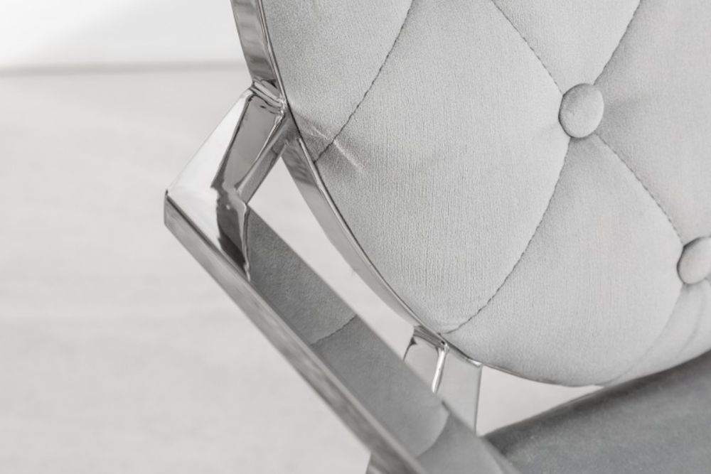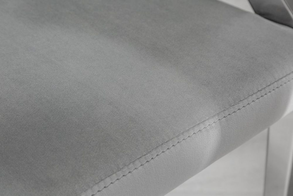 Ova stolica predstavlja savršeni spoj raskoši baroknog stila i modernih linija, stvarajući komad namještaja koji istovremeno zrači elegancijom i suvremenom udobnošću. Presvučen baršunom u nježnoj sivoj nijansi, stolac nudi neodoljivu mekoću i luksuzan osjećaj, dok njegov ergonomski oblik pruža udobnost koja nadmašuje očekivanja. Dekorativni detalji na naslonu i pažljivo oblikovane noge podsjećaju na bogatu estetsku tradiciju baroka, no s modernim minimalizmom koji ga čini idealnim za suvremene interijere. Čvrsta konstrukcija i profinjeni materijali osiguravaju dugotrajnu upotrebu, dok njegova bezvremenska ljepota podiže svaki prostor – od blagovaonice do salona – na novu razinu sofisticiranosti.