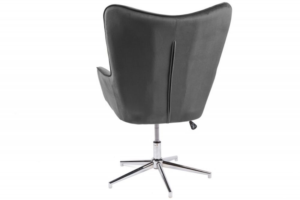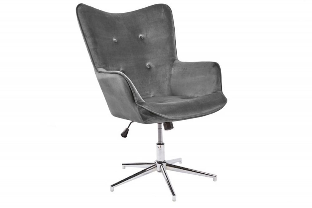 Ova dizajnerska stolica utjelovljuje suptilnu eleganciju i vrhunsku udobnost, postajući centralni komad u svakom modernom interijeru. Presvučen nježnim baršunom u sofisticiranoj sivoj nijansi, njegov luksuzni izgled odmah privlači poglede. Mekana tkanina i ergonomski oblik pružaju izniman osjećaj udobnosti, čineći ovaj stolac idealnim za dugotrajno opuštanje ili rad. Njegov visok naslon i široko sjedalo osiguravaju potpuni oslonac za tijelo, dok čvrsta metalna baza omogućava rotaciju i fleksibilnost. Svojim minimalističkim, a istovremeno otmjenim dizajnom, savršeno se uklapa u razne stilove interijera, od suvremenih do klasičnih.