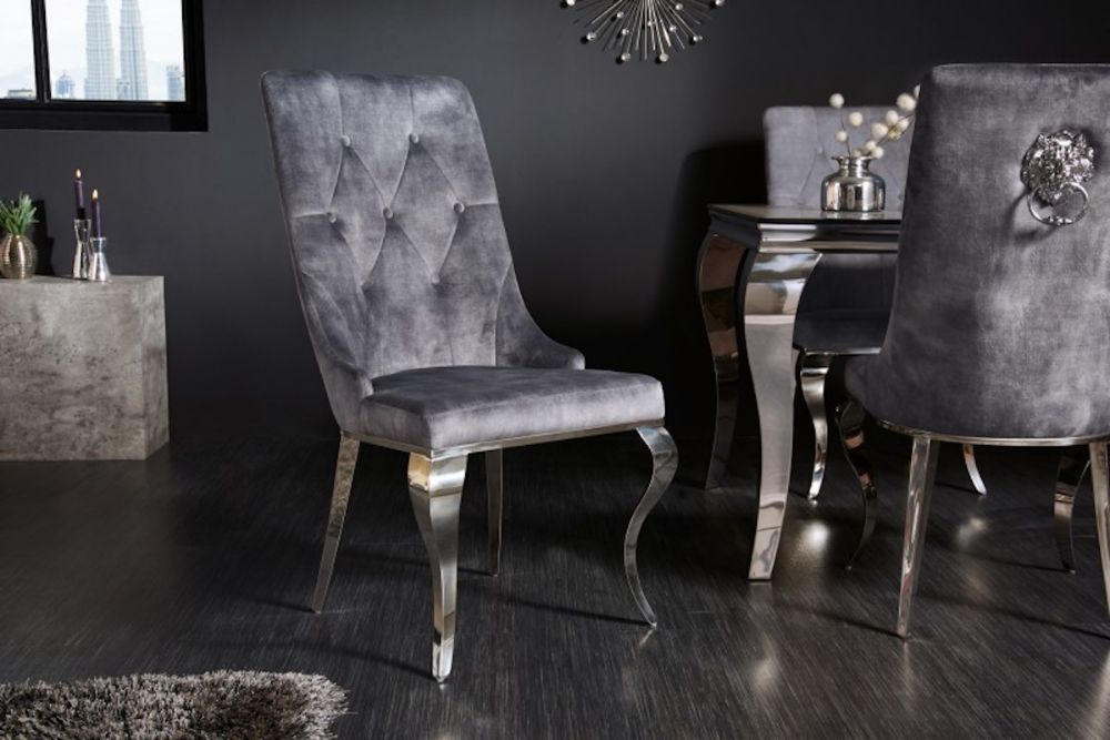 Ova stolica predstavlja raskošan spoj suvremenog dizajna i barokne elegancije, stvoren za one koji žele unijeti dozu luksuza u svoj dom. Presvučen finom sivom tkaninom, ovaj komad zrači sofisticiranošću, dok bogati zlatni detalji, poput lavlje glave na stražnjem dijelu naslona, unose dašak klasičnog sjaja. Ergonomski oblikovan naslon i sjedalo pružaju vrhunsku udobnost, savršeno prilagođeni za dugotrajno sjedenje. Dekorativni elementi inspirirani barokom dodaju profinjenost, dok čvrsta konstrukcija osigurava dugotrajnost i stabilnost. Ovaj stolac savršeno se uklapa u moderne i klasične interijere, podižući svaku prostoriju svojom suptilnom, ali neodoljivom prisutnošću.