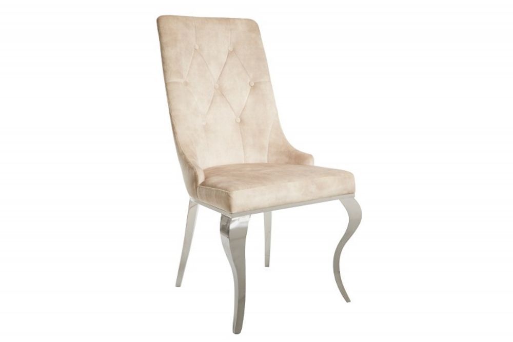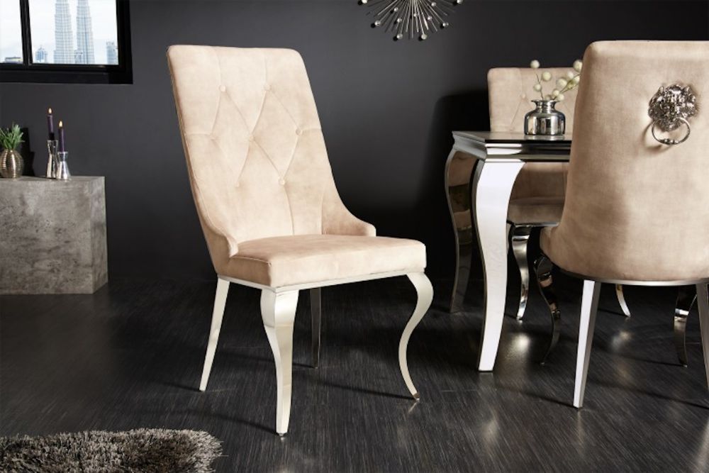 Ova stolica predstavlja raskošan spoj suvremenog dizajna i barokne elegancije, stvoren za one koji žele unijeti dozu luksuza u svoj dom. Presvučen finom bež tkaninom, ovaj komad zrači sofisticiranošću, dok bogati zlatni detalji, poput lavlje glave na stražnjem dijelu naslona, unose dašak klasičnog sjaja. Ergonomski oblikovan naslon i sjedalo pružaju vrhunsku udobnost, savršeno prilagođeni za dugotrajno sjedenje. Dekorativni elementi inspirirani barokom dodaju profinjenost, dok čvrsta konstrukcija osigurava dugotrajnost i stabilnost. Ovaj stolac savršeno se uklapa u moderne i klasične interijere, podižući svaku prostoriju svojom suptilnom, ali neodoljivom prisutnošću.