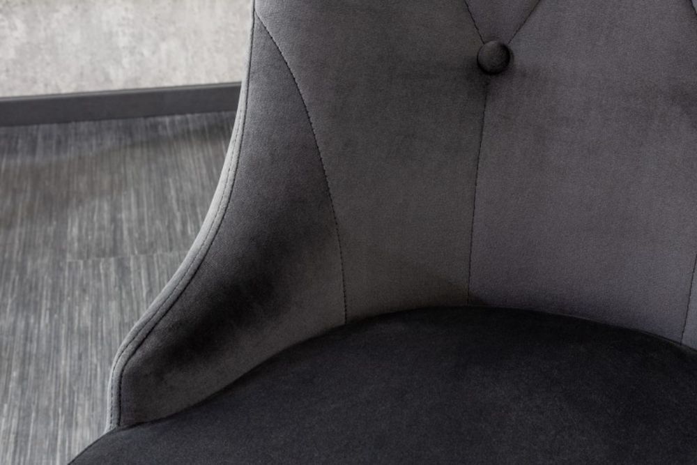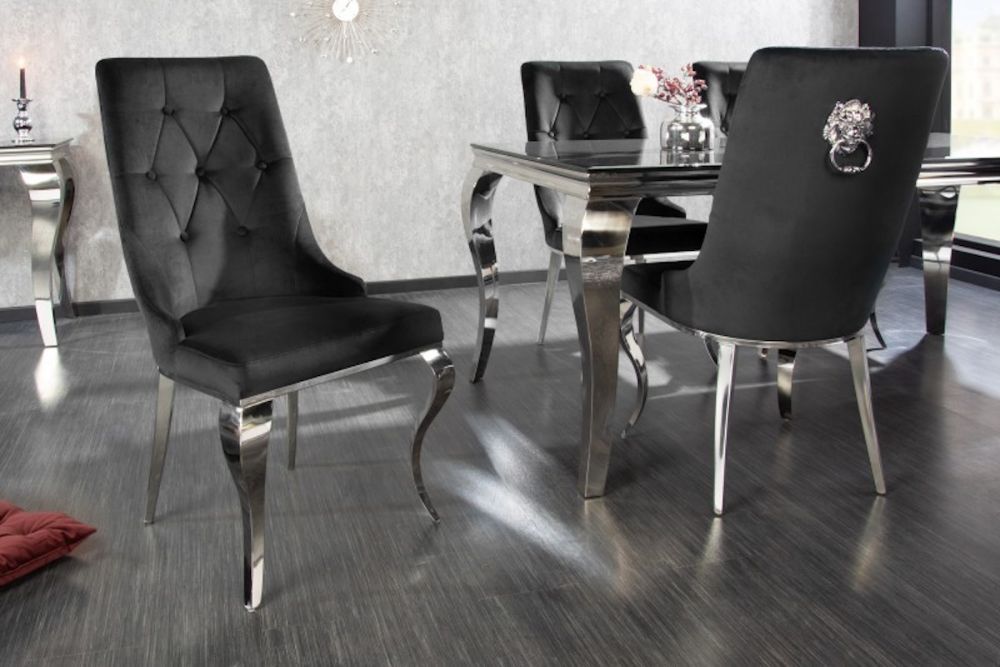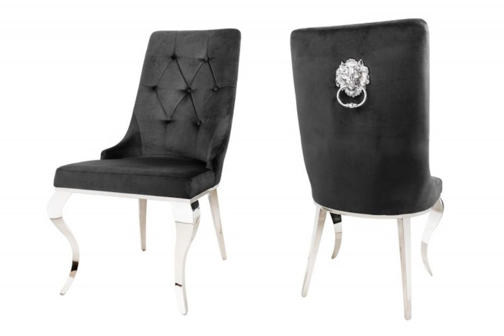 Ova stolica predstavlja raskošan spoj suvremenog dizajna i barokne elegancije, stvoren za one koji žele unijeti dozu luksuza u svoj dom. Presvučen finom crnom tkaninom, ovaj komad zrači sofisticiranošću, dok bogati zlatni detalji, poput lavlje glave na stražnjem dijelu naslona, unose dašak klasičnog sjaja. Ergonomski oblikovan naslon i sjedalo pružaju vrhunsku udobnost, savršeno prilagođeni za dugotrajno sjedenje. Dekorativni elementi inspirirani barokom dodaju profinjenost, dok čvrsta konstrukcija osigurava dugotrajnost i stabilnost. Ovaj stolac savršeno se uklapa u moderne i klasične interijere, podižući svaku prostoriju svojom suptilnom, ali neodoljivom prisutnošću.