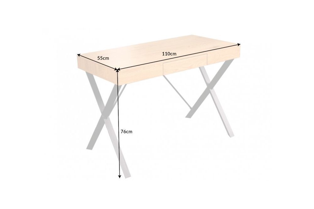 Površina stola, pažljivo oblikovana od MDF materijala, prekrivena je folijom koja imitira prirodni hrast, dajući ovoj funkcionalnoj umjetnosti suptilnu sofisticiranost. Njegove dimenzije – 110 cm širine, 76 cm visine i 55 cm dubine – čine ga praktičnim izborom, bilo da se koristi kao konzolni stolić u hodniku, elegantan radni stol u dnevnom boravku ili profinjeni toaletni stolić u spavaćoj sobi.