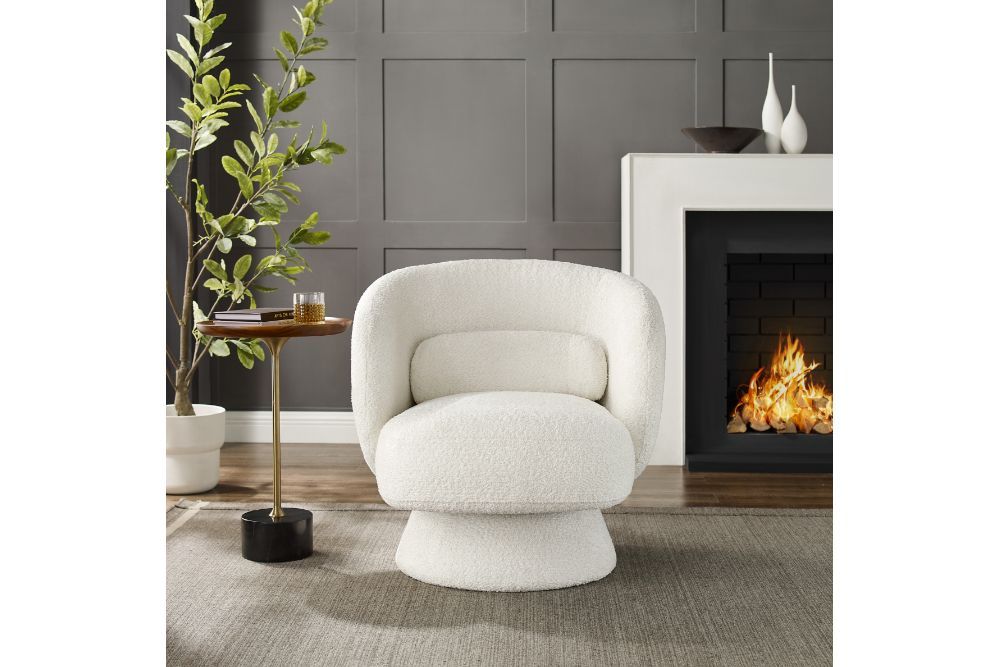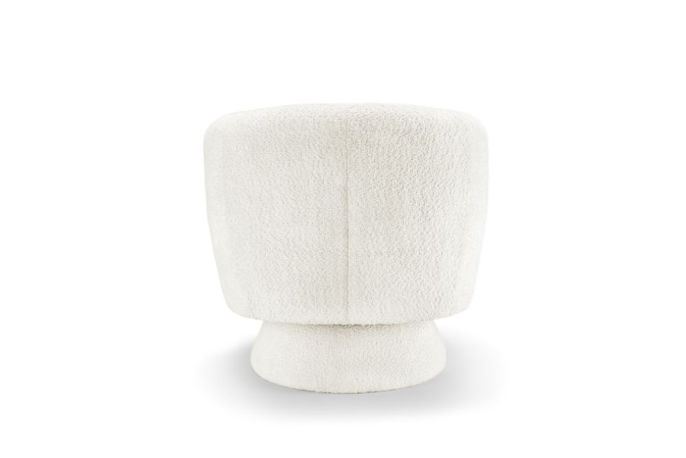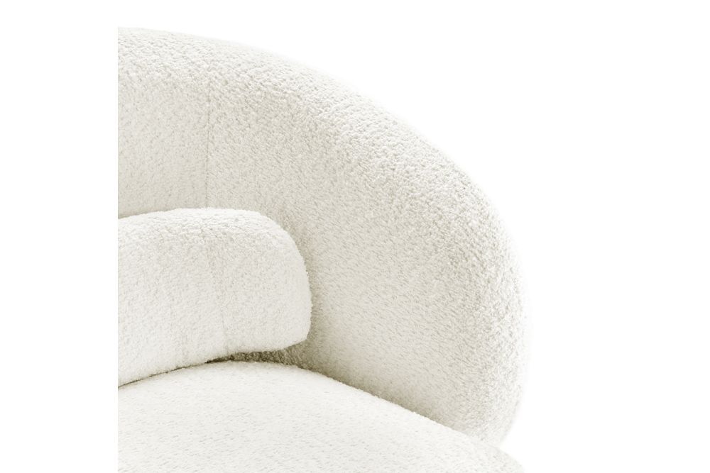 Presvučena je bijelom bouclé tkaninom, koja svojim teksturama unosi dubinu i sofisticiranost u svaki prostor. Bouclé, 100% poliester, stvara meki, bogati vizualni dojam, dok njegova neobična, pomalo „grbava“ površina poziva na dodir, naglašavajući osjećaj topline i udobnosti.