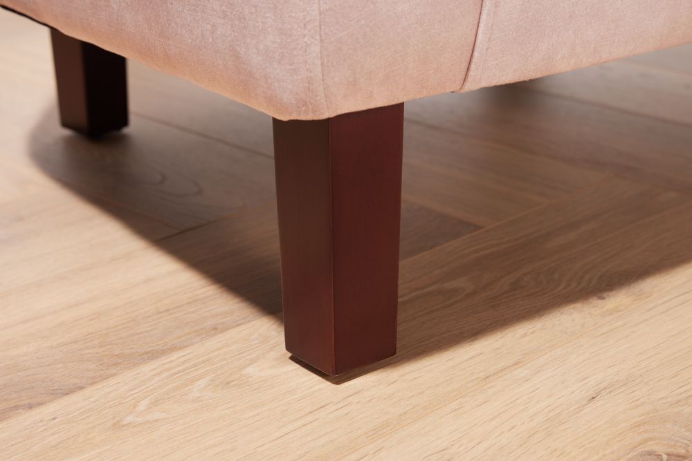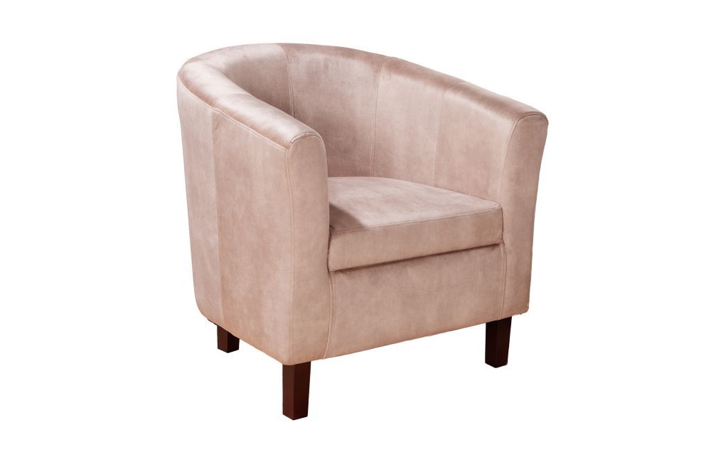 Noge od borovog drva u bogatoj smeđoj boji nadopunjuju njezin elegantni izgled, donoseći prirodni element koji ujedinjuje tradiciju i modernost. Zajedno, materijali i boje ove fotelje stvaraju skladnu cjelinu koja je istovremeno nježna i snažna.