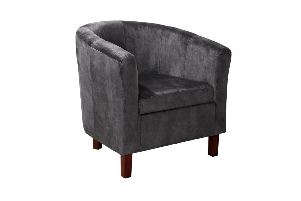 Presvučena tamnosivim baršunom, fotelja donosi osjećaj luksuza i sofisticiranosti. Baršunasti materijal, sa svojim mekim i bogatim teksturama, odražava svjetlost i donosi osjećaj topline, pozivajući na dodir. Tamno siva boja daje fotelji ozbiljan, ali smiren izgled, idealan za stvaranje sofisticiranog prostora u kojem se opuštanje pretvara u ritual.