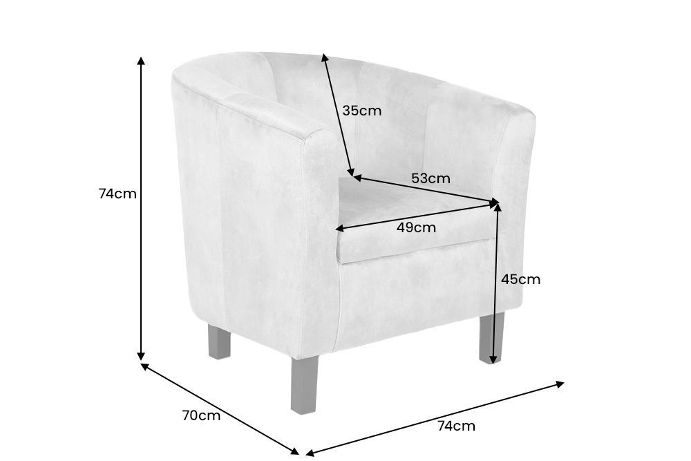 Ova fotelja, sa svojim skladnim dimenzijama 74 cm x 74 cm x 70 cm, poziva na potpunu udobnost i uživanje. Sjedalo dimenzija 49 cm x 45 cm x 53 cm pruža savršen prostor za opuštanje, dok visina naslona od 35 cm nježno podupire vaša leđa, a visina naslona ruke od 24 cm nudi laganu potporu. Razmak između poda i naslona ruke od 66 cm dodaje eleganciju njezinoj formi, čineći ovu fotelju vizualno laganom, a istovremeno čvrstom u funkcionalnosti.
