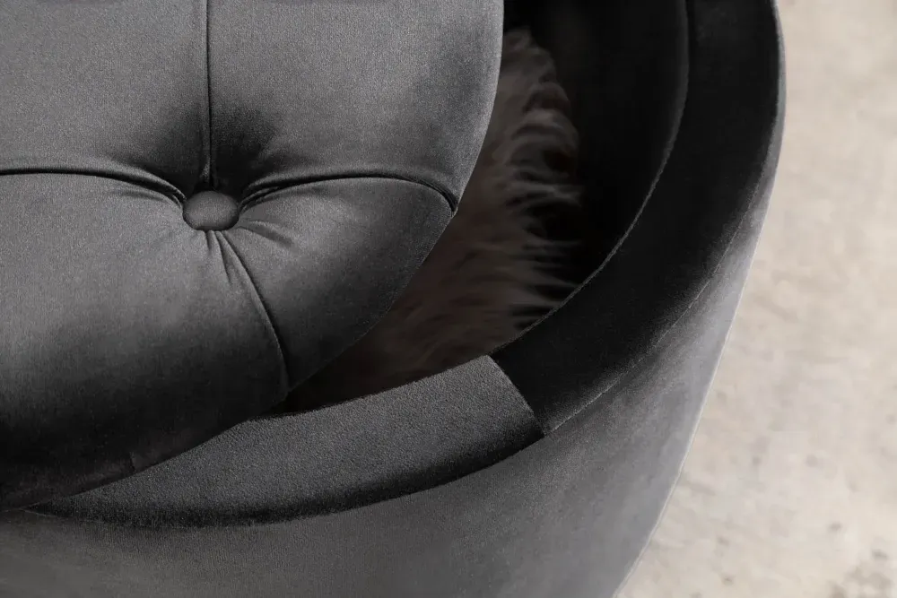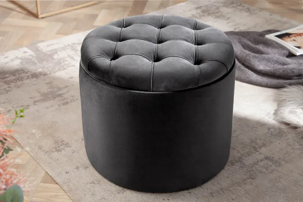 Grey Velvet Tabure s pohranom spaja mekoću luksuznog baršuna i pametnu funkcionalnost u jednom kompaktnom komadu. Elegantna siva nijansa lako se uklapa u moderan interijer, dok baršunasta površina daje dozu sofisticiranosti i topline.