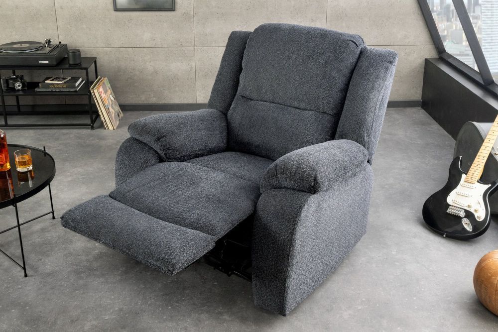Hollywood Dark Grey Fotelja unosi udobnost poput kino-sjedećih mjesta i suvremenu eleganciju u vaš dnevni boravak. Presvlaka od mekanog teksturiranog materijala pruža ugodnu, taktilnu udobnost, dok ergonomski naslon omogućuje potpuno opuštanje – bilo da se želite ispružiti ili zaviti u fotelju.