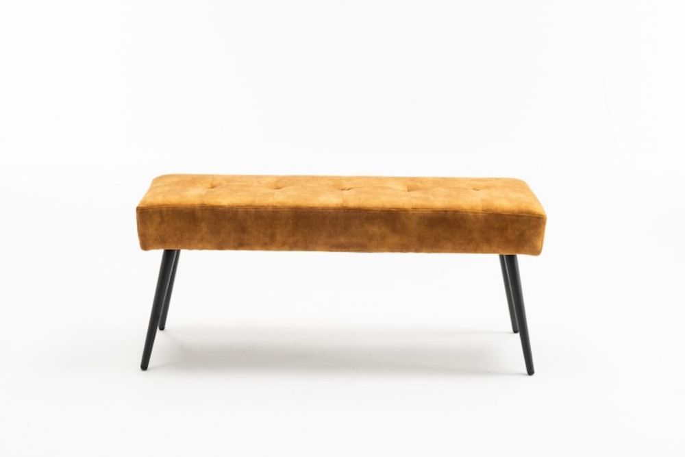 Ova tapicirana klupa, obučena u žutu baršunastu tkaninu, odiše toplinom i elegancijom, čineći svaki prostor u kojem se nalazi življim i ugodnijim. Njezina širina od 100 cm i dubina od 35 cm pružaju dovoljno prostora za sjedenje, dok visina od 45 cm osigurava udobnost koja je savršena za sve prilike—bilo da je smjestite uz podnožje kreveta, u predsoblje, ili kao središnji komad u dnevnom boravku.