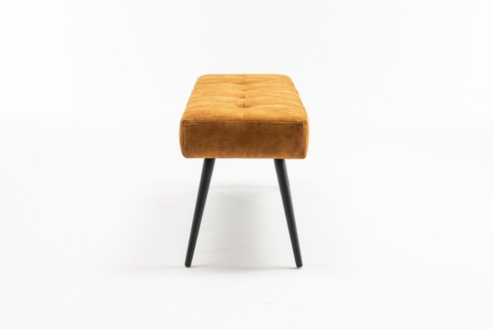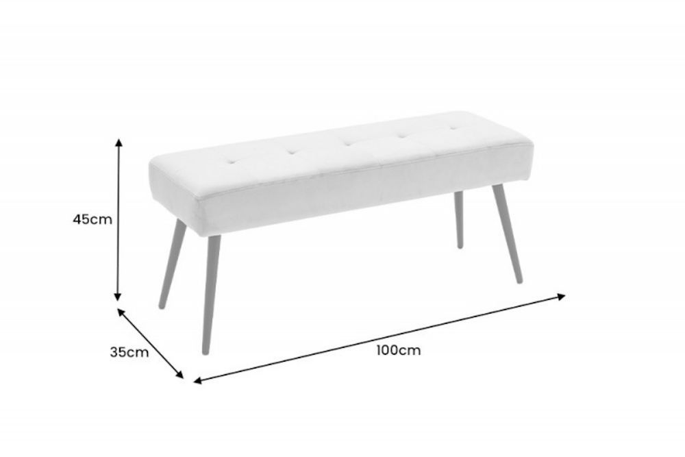 Crni metalni okvir, kontrastira s toplinom tkanine, unoseći element modernosti i čvrstoće. Njegove tanke, ali stabilne noge omogućavaju nosivost do 110 kilograma, čime ova klupa postaje ne samo dekorativni, već i funkcionalni dodatak svakom domu. Ovaj kontrast između hladnog metala i toplog baršuna stvara vizualnu ravnotežu koja je izuzetno privlačna.