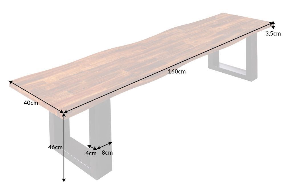 Klupa "Natura industriale" predstavlja savršeni spoj prirode i industrijskog dizajna, što ju čini upečatljivim komadom namještaja. Izrađena od visokokvalitetnog akacijskog drva, ova klupa nudi jedinstvenu kombinaciju prirodne estetike i modernog minimalizma. Svaki detalj na njoj odražava pažljivo izrađene elemente i ljubav prema prirodnim materijalima. Drvena površina klupe izrađena je s naglaskom na prirodnu liniju drveta, poznatu kao "Baumkanten Design". Ovaj dizajn omogućuje da svaki komad namještaja zadrži jedinstven karakter i prirodnu ljepotu drvenih vlakana i čvorova. Dimenzije klupe su impresivnih 160 cm dužine, 46 cm visine i 40 cm dubine, s debljinom sjedala od 35 mm. Ove dimenzije osiguravaju dovoljno prostora za udobno sjedenje dok zadržavaju elegantnu siluetu. Materijal korišten za izradu sjedišta je geoljeno akacijino drvo, poznato po svojoj trajnosti i otpornosti. Klupa je obojena u toplu smeđu boju s efektom plamena, što dodatno ističe prirodnu teksturu drveta. Postolje je izrađeno od čvrstog željeza, obojeno u industrijski antracit ton, što klupi daje moderan i robustan izgled. Uz privlačan dizajn, klupa Genesis nudi i visoku funkcionalnost. Maksimalna nosivost klupe je oko 220 kg, što je čini izuzetno čvrstom i stabilnom za svakodnevnu upotrebu. Postolje dimenzija 8 cm x 4 cm pruža dodatnu stabilnost i sigurnost. Budući da je riječ o prirodnom proizvodu, moguće su male varijacije u dimenzijama, boji i teksturi drva. Ove varijacije nisu nedostaci, već dodaju autentičnost i jedinstvenost svakom komadu namještaja, čineći ga posebnim i originalnim. Klupa Genesis od akacije je više od običnog komada namještaja; ona je umjetničko djelo koje unosi prirodnu ljepotu i sofisticirani industrijski dizajn u svaki prostor. Njena trajnost, funkcionalnost i jedinstven dizajn čine je savršenim dodatkom za svaki dom. Ova klupa nije samo mjesto za sjedenje, već i izjava stila i ljubavi prema prirodi. Ako tražite komad namještaja koji kombinira estetsku privlačnost s praktičnošću, klupa Genesis je pravi izbor za vas.