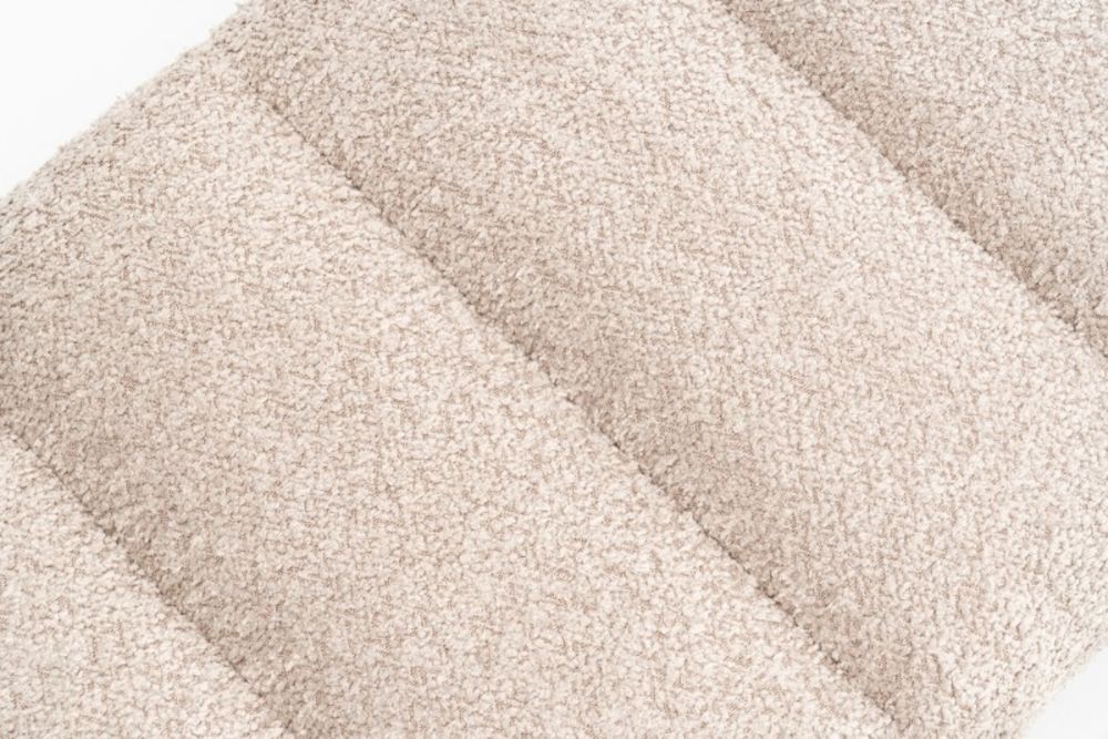 Presvlaka, izrađena od finog šampanj sivog baršuna, nježno privlači pogled svojom mekoćom i suptilnim sjajem. Svaki šav na njoj, pažljivo izrađen u dekorativnom uzorku, dodaje dimenziju i dubinu, stvarajući igru svjetla i sjene koja podsjeća na valove na površini mirnog jezera. Ova zrcalna simetrija nije samo estetski ugodna, već i taktilno privlačna, pozivajući na dodir.