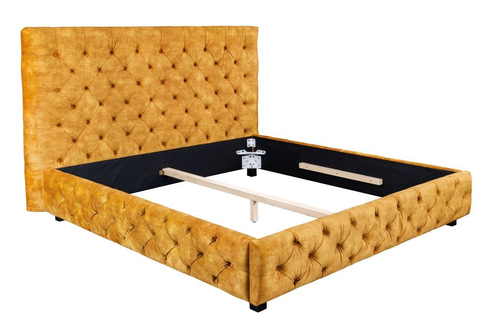 Presvučen luksuznim baršunom u oker nijansi, od 100% poliestera, krevet odiše sofisticiranošću i elegancijom. Drvene noge od kaučukovca osiguravaju čvrstu osnovu, dok maksimalna nosivost od 250 kg garantira izdržljivost. Svojim luksuznim baršunastim izgledom, ovaj krevet pretvara svaku spavaću sobu u oazu stila i udobnosti.