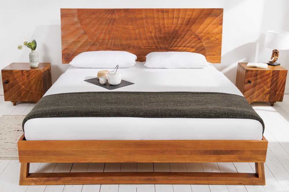 Ovaj krevet također sadrži srednju gredu, omogućujući umetanje dvije podnice, što doprinosi stabilnosti konstrukcije. Isporuka dolazi bez podnice i madraca, ali njegova upečatljiva ručno izrađena rezbarija na uzglavlju i prirodna elegancija čine ga središnjim komadom svake spavaće sobe.