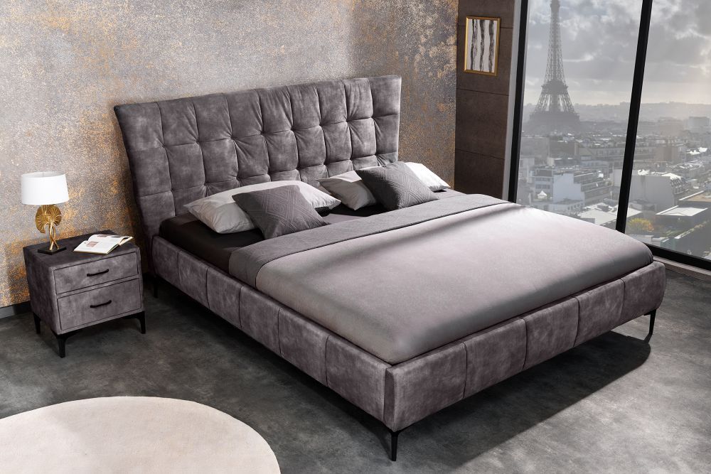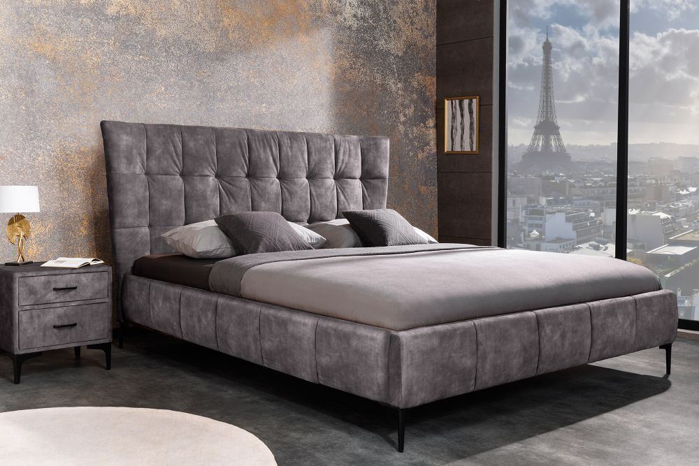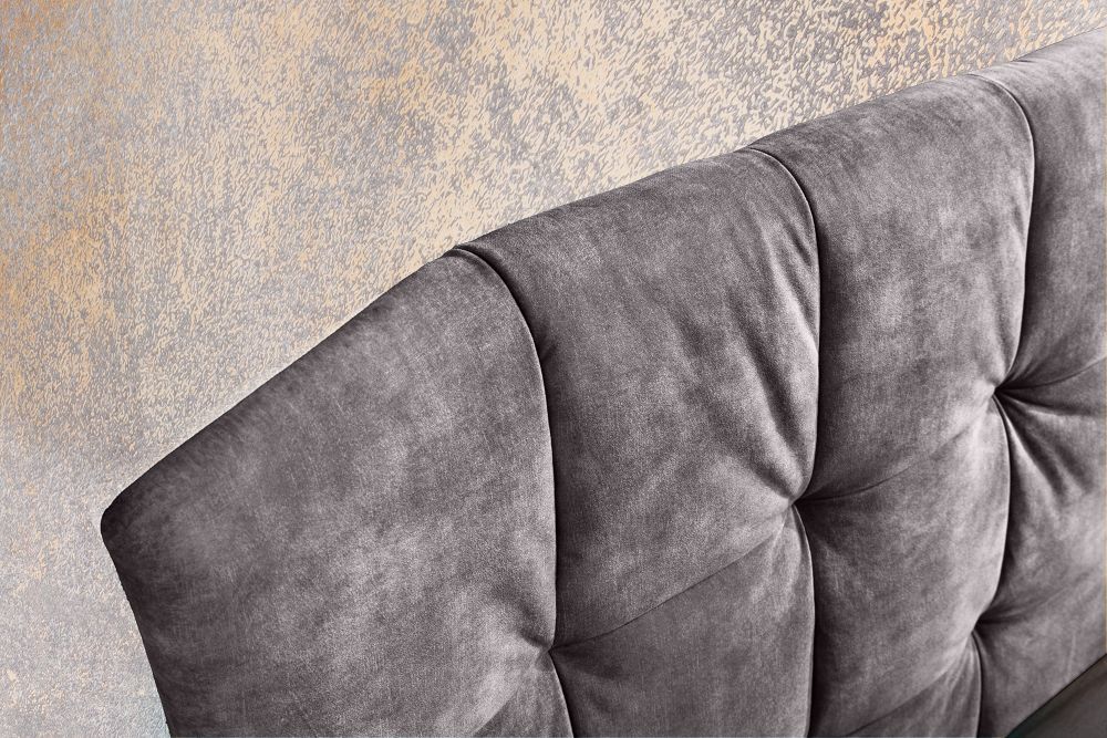 Krevet na slici predstavlja pravi elegancije i suptilnosti, savršeno uklopljeno u modernu estetiku. Njegovo impozantno uzglavlje, visoko 110 cm, djeluje kao čvrsta, ali mekana granica između sna i stvarnosti, presvučeno luksuznim baršunom u dubokoj tamno sivoj nijansi koja odiše sofisticiranošću.