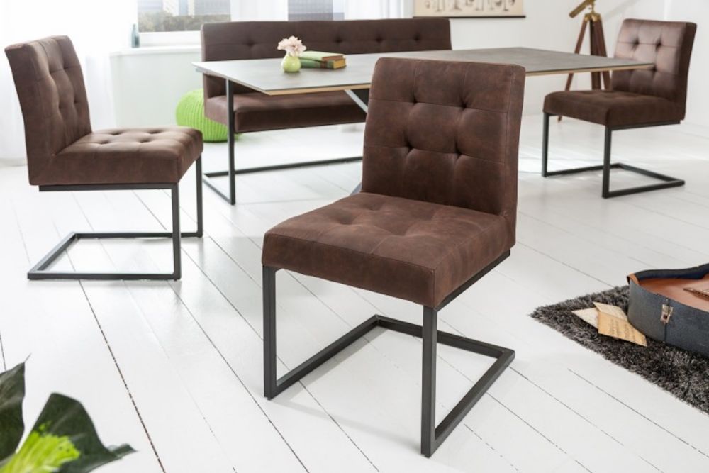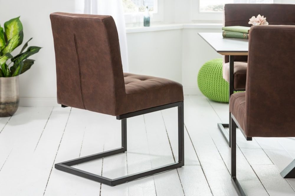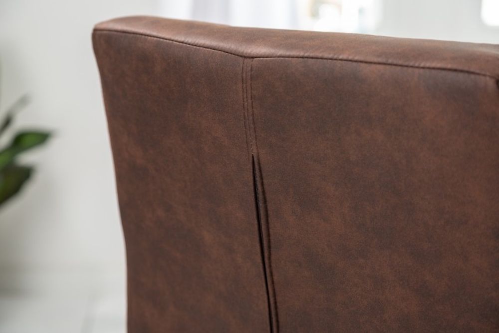 Ova impresivna stolica s vintage šarmom donosi suptilnu eleganciju i bezvremenski dizajn u vaš interijer. Presvučen materijalom u toploj, smeđoj nijansi s efektom brušene kože, odiše sofisticiranim retro stilom, savršeno se uklapajući u moderne i industrijske prostore. Ergonomski dizajn sjedala i naslona pruža iznimnu udobnost i potporu, idealnu za dugotrajno sjedenje. Metalni okvir, koji omogućava blagi oscilacijski efekt, unosi dinamiku u statičan prostor, pružajući osjećaj slobode i opuštanja pri svakom pokretu. Suptilna kombinacija industrijskih i vintage elemenata stvara harmoničan balans između robusnosti i elegancije, čineći ovaj stolac ključnim elementom svake prostorije.