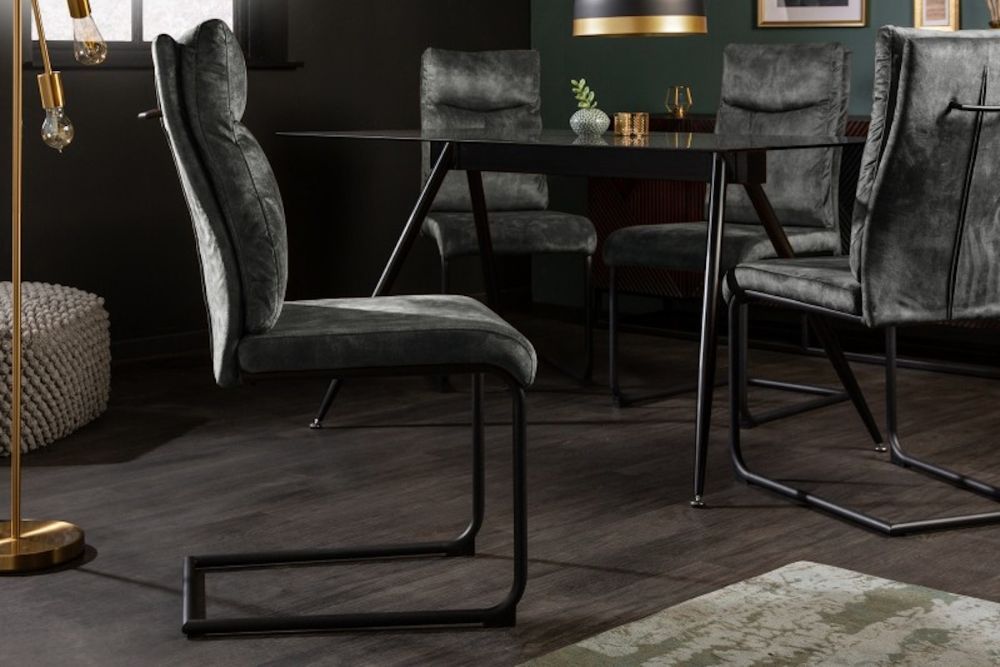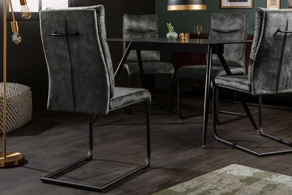 Ova moderna stolica predstavlja savršenu kombinaciju udobnosti i industrijskog dizajna, stvoren za one koji cijene eleganciju i funkcionalnost. Prekriven tkaninom  sive boje, donosi dozu šarma u svaki prostor, dok ergonomski oblik sjedala osigurava maksimalnu podršku tijekom dugotrajnog sjedenja. Svojim čvrstim, ali fleksibilnim metalnim okvirom, ovaj stolac pruža blagi oscilacijski efekt, koji dodatno pridonosi osjećaju opuštanja. Nijanse tkanine u kombinaciji s industrijskim, mat crnim okvirom čine ga idealnim za moderne i minimalističke interijere. Njegove jednostavne, ali sofisticirane linije omogućuju lako uklapanje u svaki prostor, dok ovaj komad postaje estetski i funkcionalni središnji element blagovaonice ili radnog prostora.
