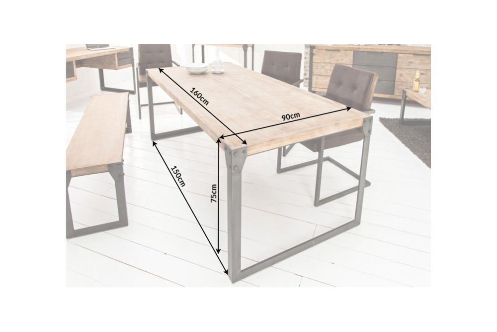 Ovaj stol predstavlja savršen spoj snage i elegancije, oslikavajući suštinu industrijskog stila kroz svaki detalj. Njegova metalna konstrukcija snažno naglašava robustan izgled, dok istovremeno donosi moderan dašak u svaki prostor. Sa dimenzijama od 160 cm x 75 cm x 90 cm, stol se čini prostranim i poziva na okupljanje, omogućujući stvaranje nezaboravnih trenutaka sa prijateljima i obitelji.