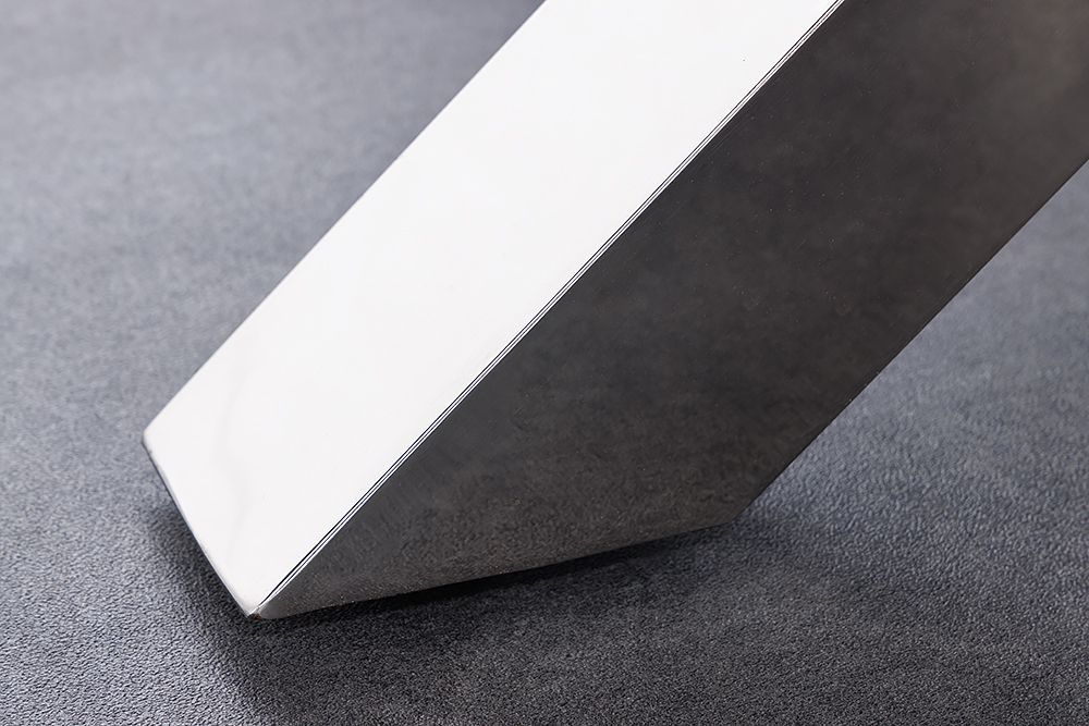 Okvir od kromiranog nehrđajućeg čelika sjaji poput dragulja, dodajući modernu notu koja upotpunjuje cjelokupni izgled stola. Njegova čvrsta struktura osigurava stabilnost i dugotrajnost, dok istovremeno reflektira svjetlost i daje dojam profinjenosti.