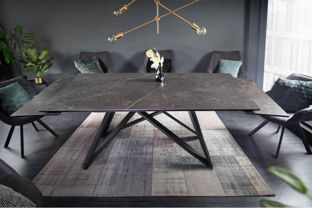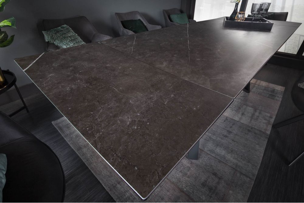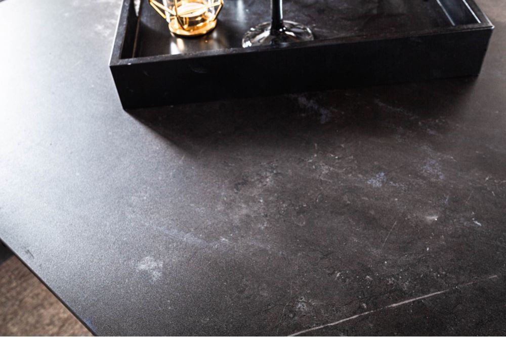 Ploča stola od keramike sa sigurnosnim staklom debljine 13 mm daje mu sofisticiran izgled i lako se održava. Antracitna boja stola pruža elegantan kontrast prema svetlijim enterijerima i dodaje notu luksuza.