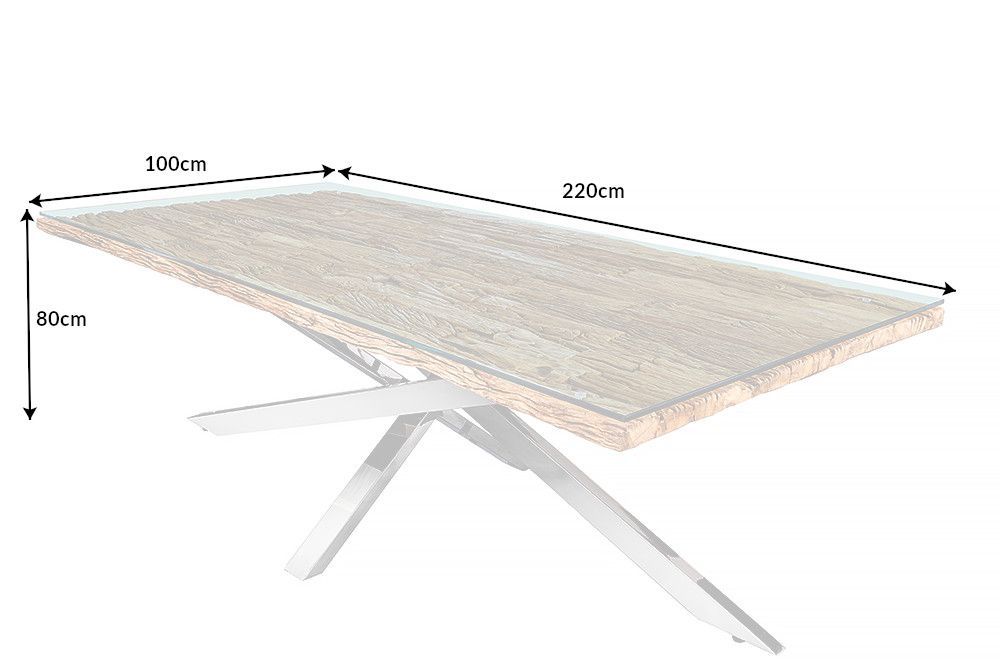 Ploča stola izrađena je od visokokvalitetnog teak drva, bogate smeđe boje koja evocira osjećaj topline i prirodne ljepote. Njena debljina od 40 mm daje dojam čvrstoće i stabilnosti, dok svaka nepravilnost i nijansa u drvetu pričaju priču o njegovom prirodnom porijeklu. Ova ploča nije samo površina za obrok; ona je umjetnički komad koji će obogatiti svaki prostor svojim jedinstvenim karakterom.