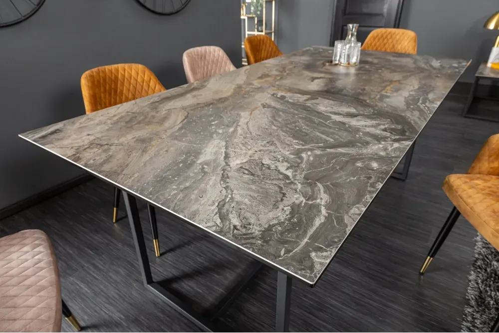 Ovaj stol unosi dojam luksuza i bezvremenske elegancije u svaki prostor. Njegova ploča s mramornim uzorkom izrađena je od keramike na kaljenom staklu, stvarajući savršen balans između estetike i otpornosti. Površina od 180 cm dužine i 90 cm širine nudi obilje prostora za objedovanje, druženje ili rad, dok visina od 76 cm omogućuje udobno korištenje u svakodnevici. Mramorni efekt daje sofisticiranu notu, a čvrsta konstrukcija i težina od 86,1 kg jamče stabilnost i trajnost. Stol koji plijeni poglede i ostavlja dojam – idealan za interijere s karakterom.