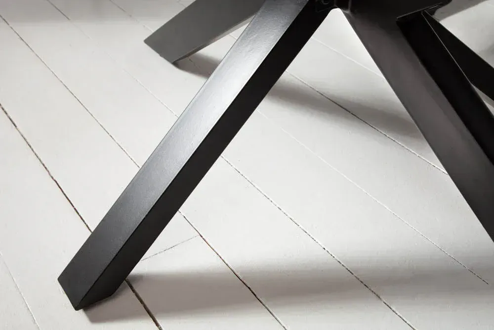 Crno metalno postolje daje stolu čvrst i stabilan karakter te ga smješta točno na raskrižje rustikalnog šarma i industrijske elegancije. Idealan je za interijere koji cijene autentičnost, trajnost i jedinstvenu prirodnu ljepotu.