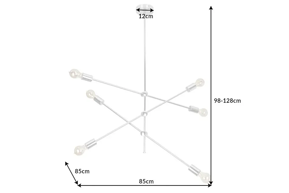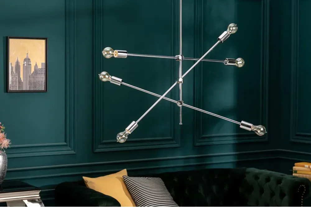 Ova elegantna viseća lampa u srebrnoj boji s metalnim sjenilom unosi luksuz i sofisticiranost u svaki prostor. S impresivnim dizajnom i snažnim osvjetljenjem, idealna je za velike prostorije koje zahtijevaju stilski i snažan izvor svjetlosti.