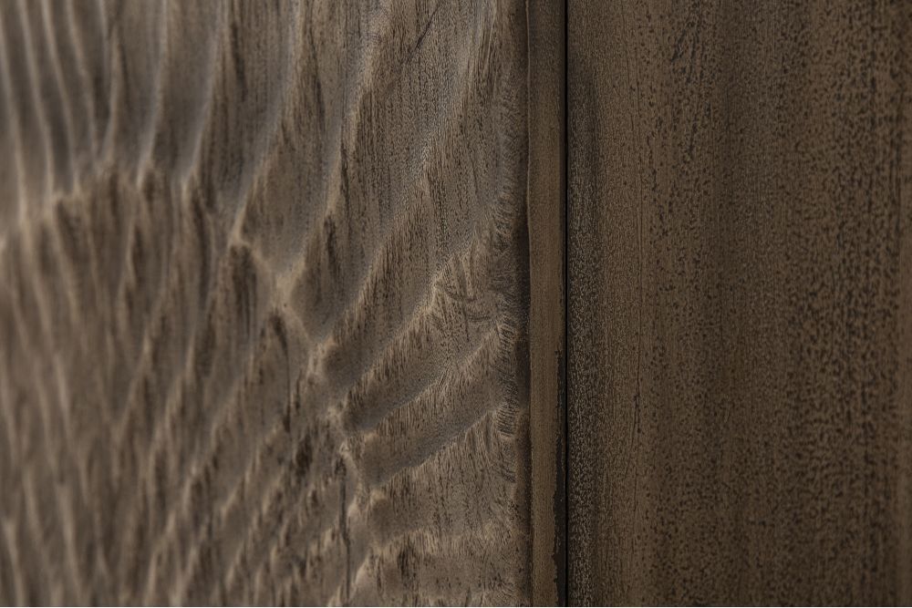 Boja u nijansama sive i crne dodaje mu moderni izgled, dok vrata s magnetskim zatvaranjem osiguravaju lako otvaranje i zatvaranje. Svaki detalj ovog ormarića priča svoju priču, od vrhunskih materijala do majstorski izrađenih rezbarija, čineći ga ne samo praktičnim komadom, već i istinskim djelom umjetnosti.