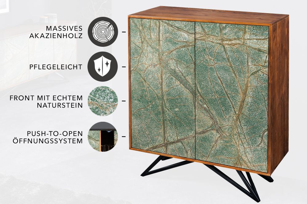 S funkcijom "push to open", vrata pružaju dodatnu praktičnost i jednostavnost u korištenju, a svaki komad je jedinstven, s mogućim odstupanjima u boji koja doprinose njegovoj autentičnosti. Ovaj ormarić nije samo komad namještaja; on je umjetničko djelo koje unosi karakter i stil u svaki prostor, pozivajući na promišljanje o ljepoti prirode i majstorskoj izradi.
