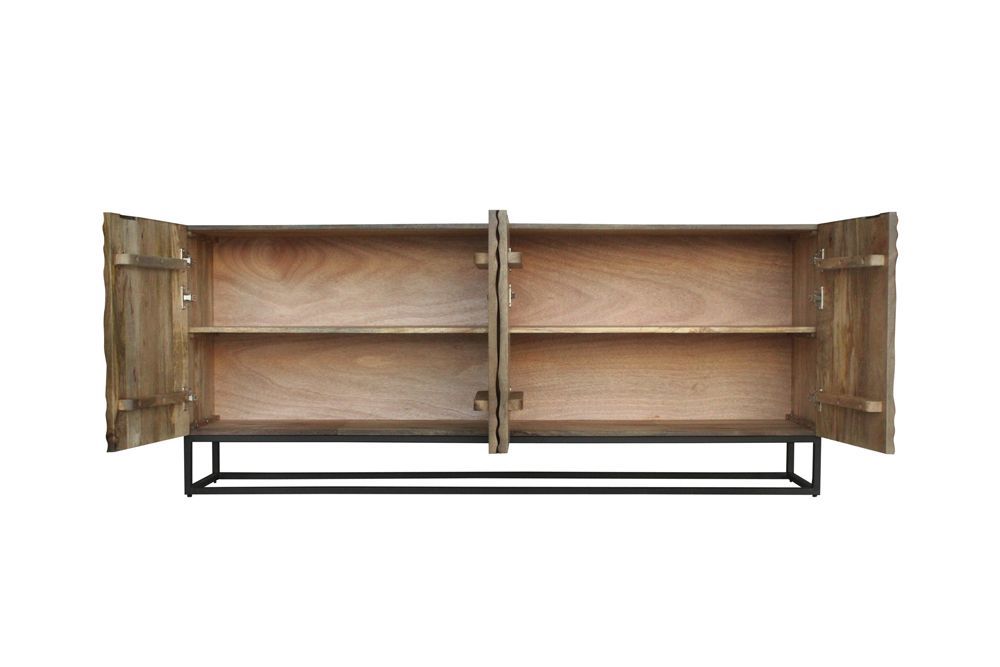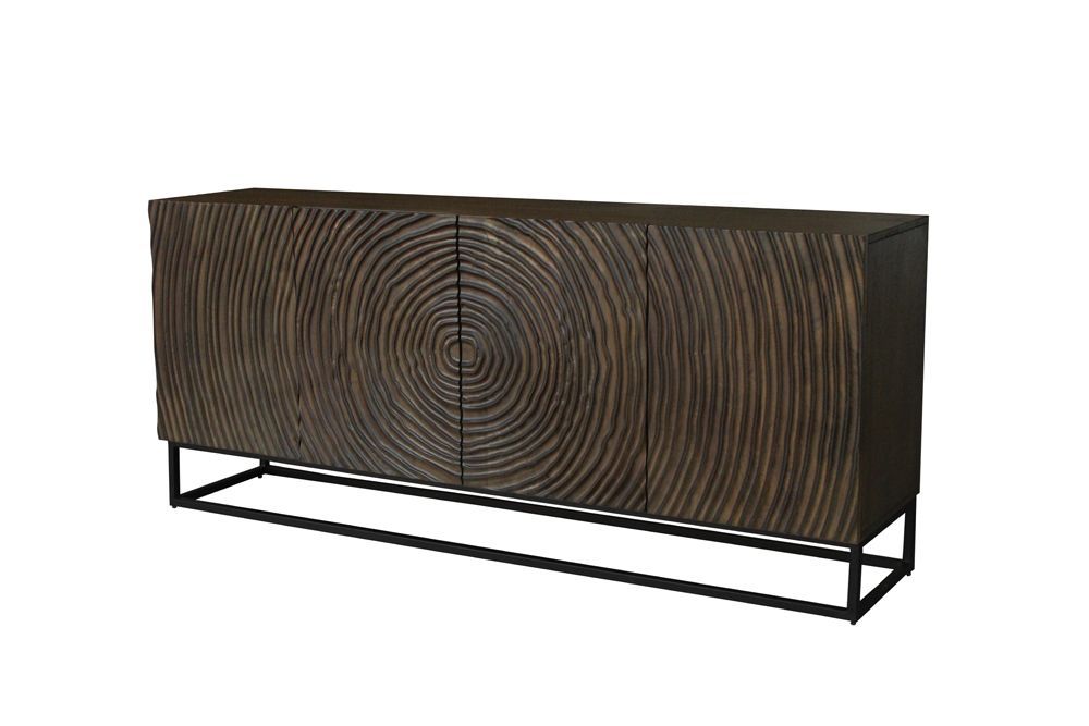 Ovaj ormarić odiše sofisticiranim i modernim stilom. Njegov površinski dizajn u 3D optici odmah privlači poglede i ostavlja dojam dubine i dinamike. Tijelo ormarića kombinira tamne tonove crne i smeđe, stvarajući elegantan kontrast koji daje dojam luksuza. Tekstura mangovog drva, pažljivo lakiranog, dodaje toplinu i prirodan osjećaj, dok stražnja strana od drvenog furnira diskretno upotpunjuje dizajn.