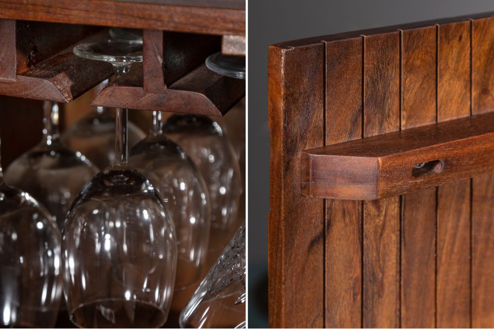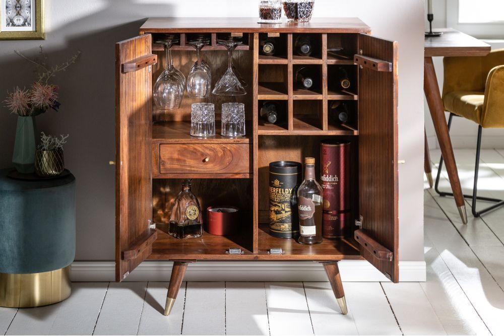 Retro stil ormarića evocira nostalgiju elegantnih kućnih barova, a njegovo skladno dizajnirano tijelo čini ga pravim umjetničkim djelom koje obogaćuje prostor i poziva na uživanje.