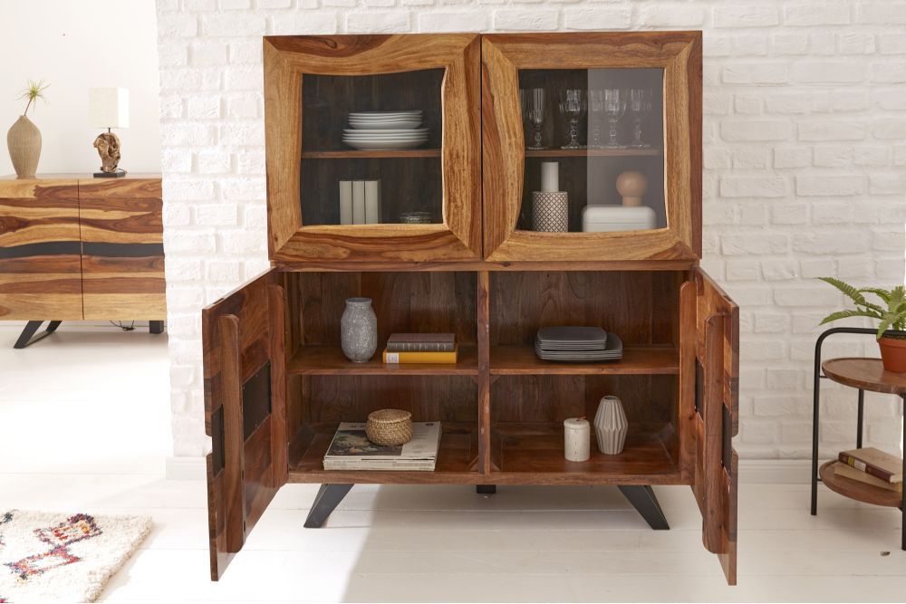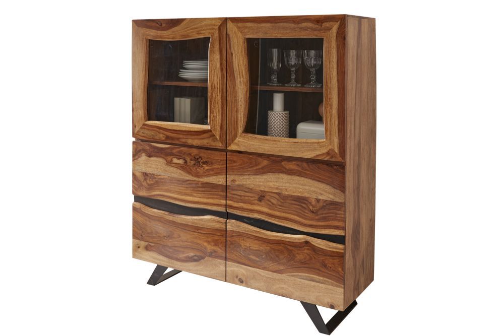 Ovaj ormar, izrađen od masivnog šišam drveta, utjelovljuje susret prirodne sirovosti i industrijske estetike. Njegov prirodni rub stabla, poput neukroćene linije rijeke, zrači autentičnom ljepotom, a toplo, organsko drvo prožeto je dubokim nijansama smeđe, prelijevajući se u slojevima teksture. Oblik ovog komada, u kontrastu s metalnim postoljem u grubom industrijskom stilu, djeluje kao most između prirode i modernizma. Metalne noge s premazom podižu ga, dajući osjećaj lebdeće lakoće, dok sama struktura odiše stabilnošću.