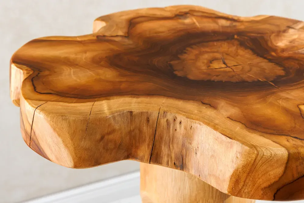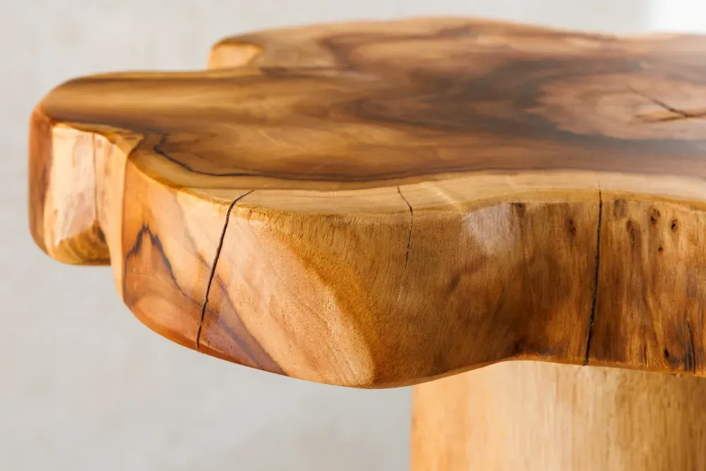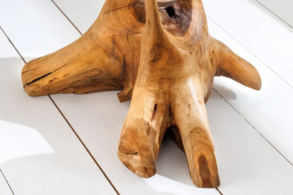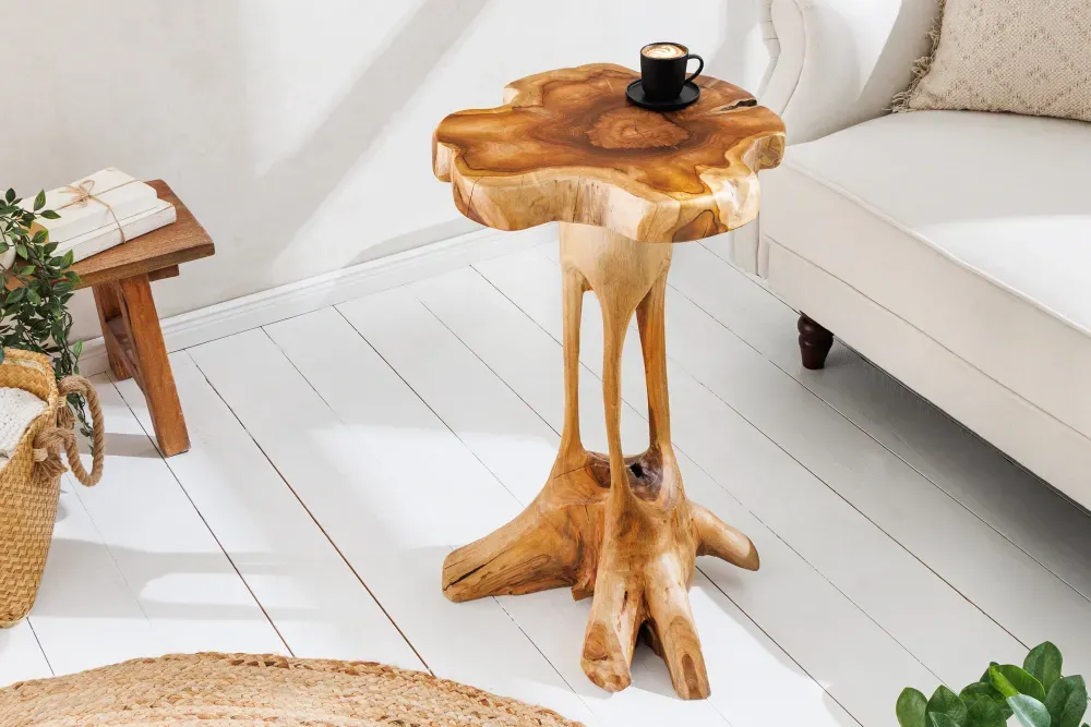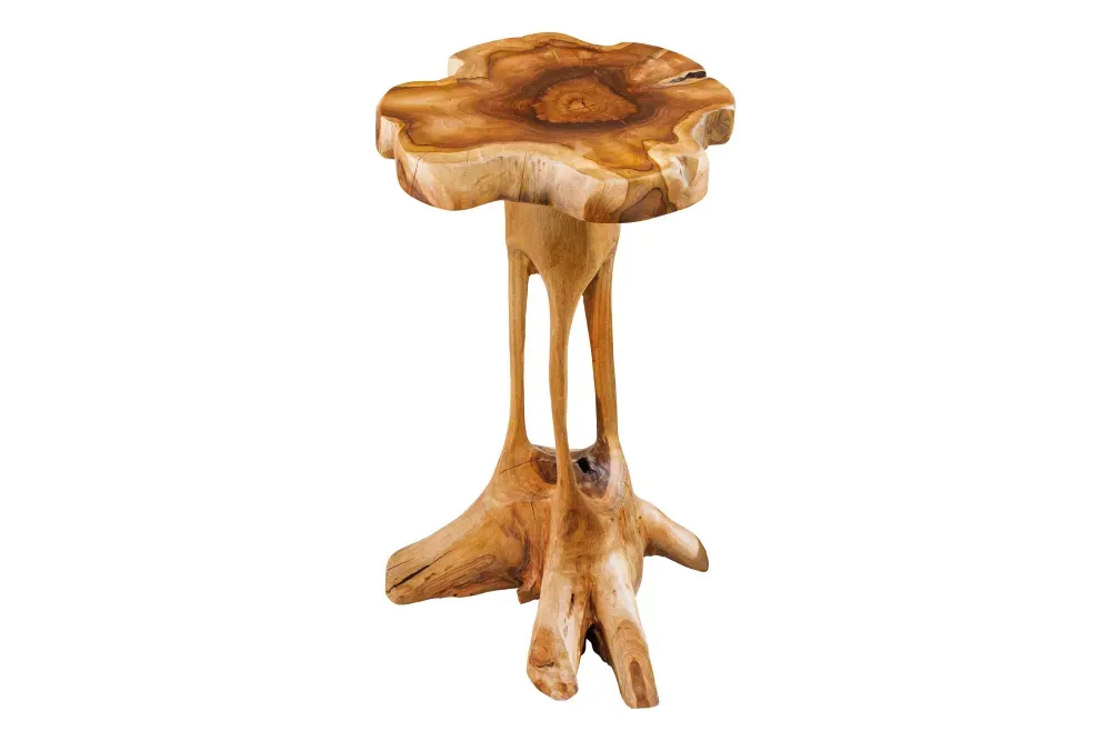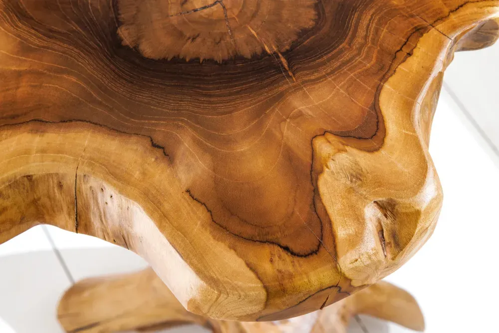 Root Natural Tabure / Stolić donosi autentičnu snagu prirode u vaš interijer. Ručno izrađen od masivnog tikovog drva, zadržava organski karakter i jedinstvenu strukturu svakog komada, što znači da ne postoje dva identična primjerka.