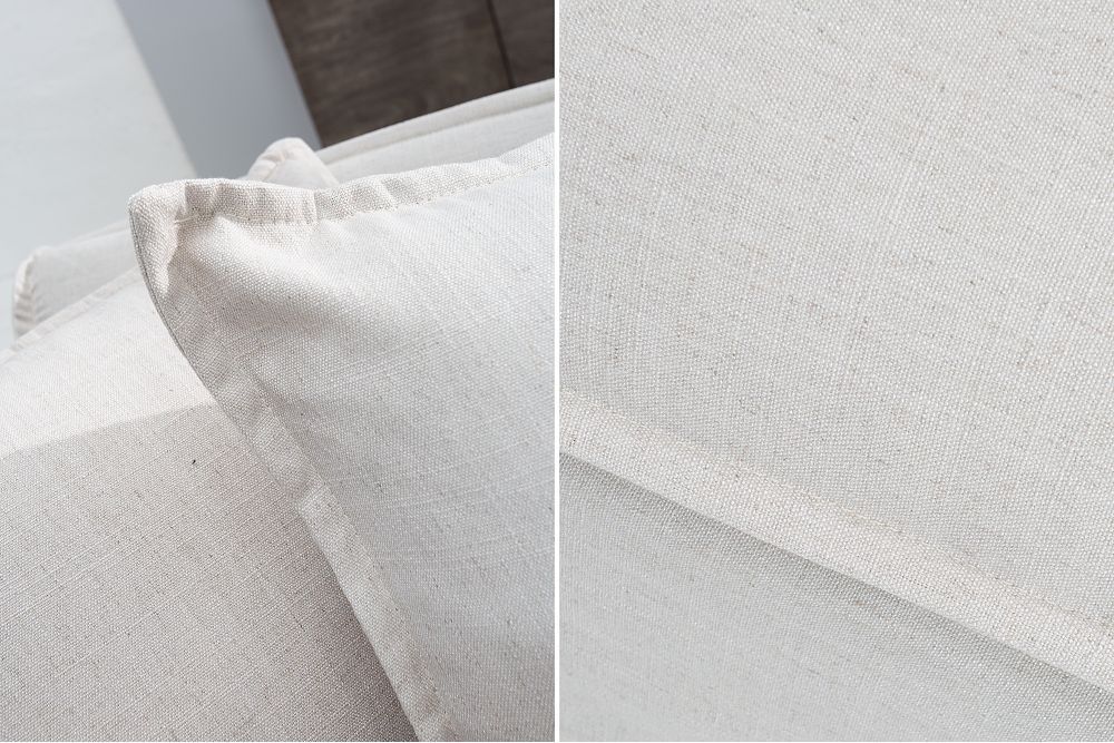 Prirodna boja presvlake daje sofi sofisticirani, a opet toplu auru, a strukturirana tkanina koja se sastoji od 75% poliestera, 10% lana i 15% viskoze dodaje dodir luksuza. Ova kombinacija materijala osigurava izdržljivost i lako održavanje, a navlaka se može jednostavno skinuti i prati u perilici na 30°, što čini ovu sofu praktičnom za svakodnevnu upotrebu.