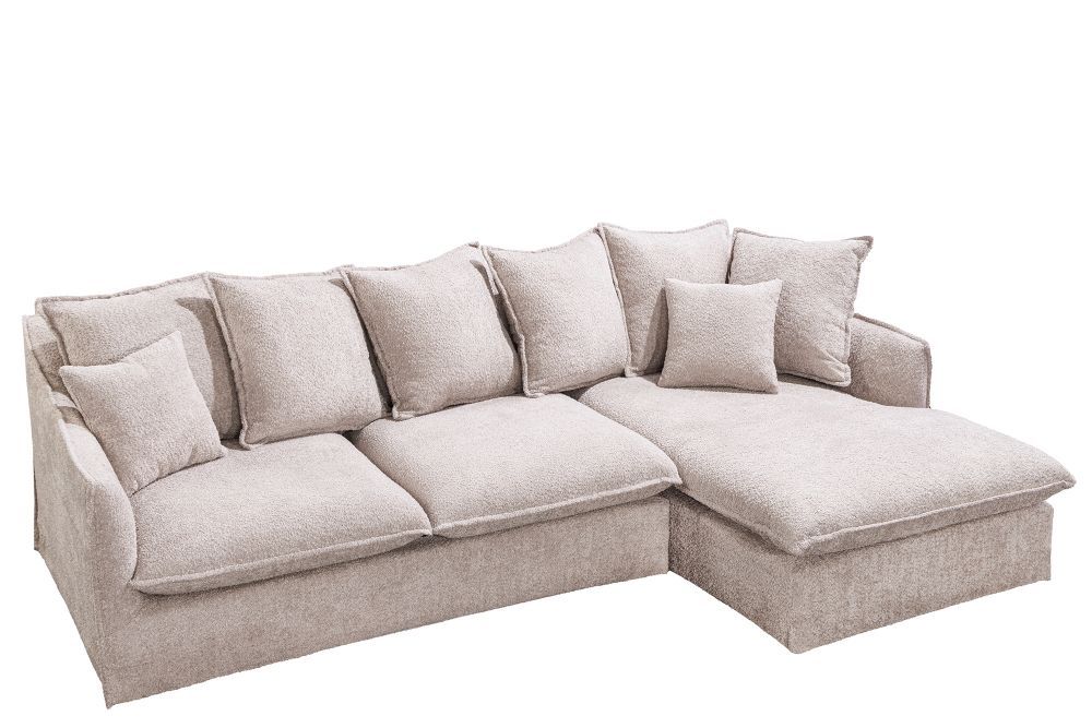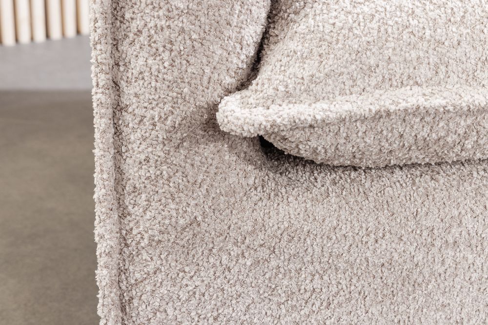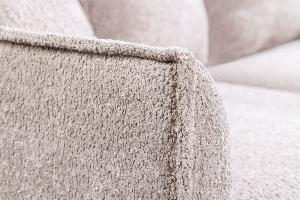 Zavodljiva boja presvlake, bež u nijansi šampanjca, unosi toplinu i eleganciju u svaki prostor. Bouclé tkanina od 100% poliestera ne samo da je vizualno privlačna, već je i izuzetno praktična, s navlakom koja se može lako skinuti i prati u perilici na 30°. Ova svojstva čine sofu idealnim izborom za dinamične prostore gdje se želi zadržati stil, ali i funkcionalnost.