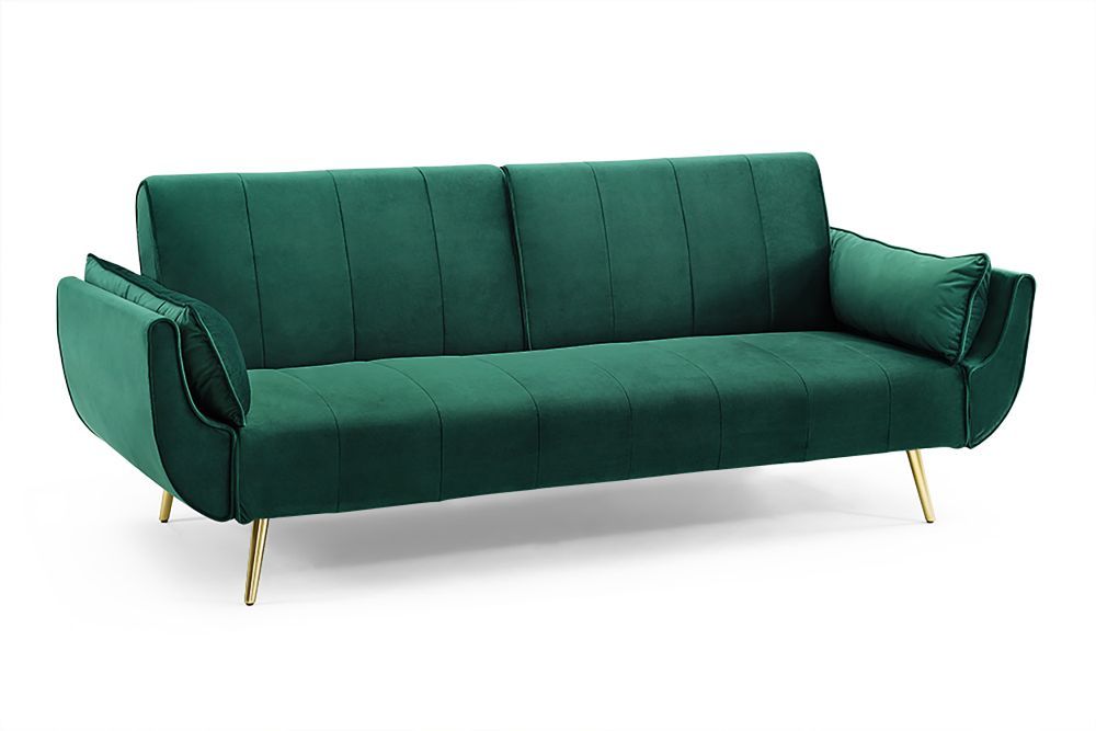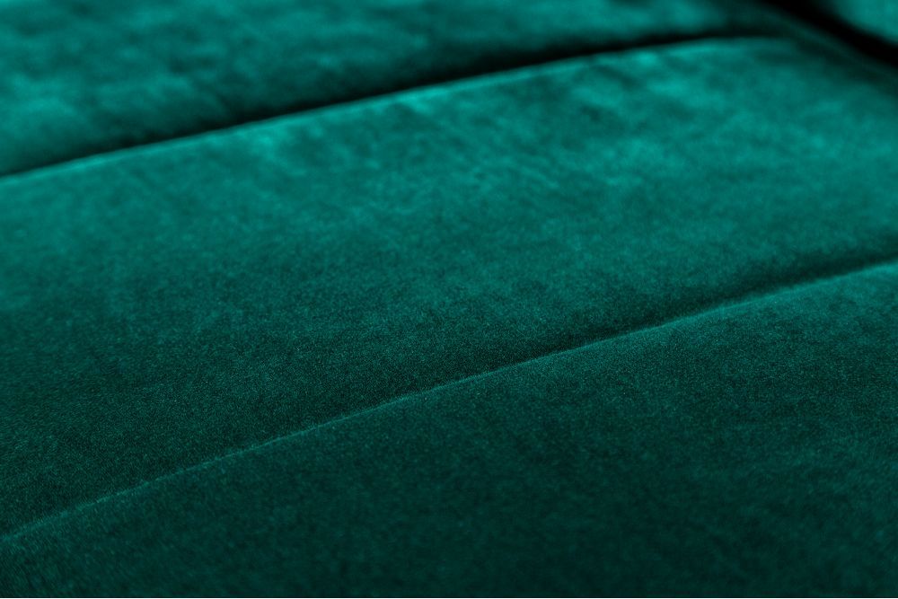Ova sofa odiše elegancijom i suptilnom raskoši, obavijena smaragdno zelenim baršunom koji očarava na prvi pogled. Poput dragulja u prostoru, njezina duboka zelena boja podsjeća na mirnoću prirode, pružajući osjećaj ugode i luksuza. Zlatni detalji na metalnim nogama, visokim 20 cm, daju joj sjaj, kao da odražavaju sunčevu svjetlost u zlatnom satu, istovremeno osiguravajući stabilnost i čvrstoću.