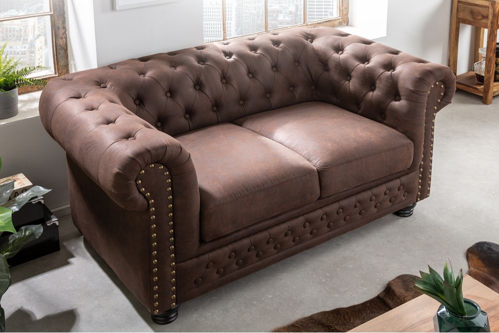 Zamislite dvosjed koji je poput tihe priče o prošlim vremenima, gdje se susreću luksuz, stabilnost i bezvremenska elegancija. Ova sofa, smještena na čvrstom drvenom okviru, čiji tvrdi drveni temelji pružaju čvrstu podršku, poziva vas da uronite u njezinu udobnost, kao što bi to učinio svaki pravi ljubitelj klasike. Njene linije, jednostavne ali snažne, odražavaju povijest Chesterfield stila – ukrasno šivanje na presvlaci, sa sofisticiranim zakovicama koje ocrtavaju njezinu eleganciju, ističu svakodnevnu ljepotu i funkcionalnost.