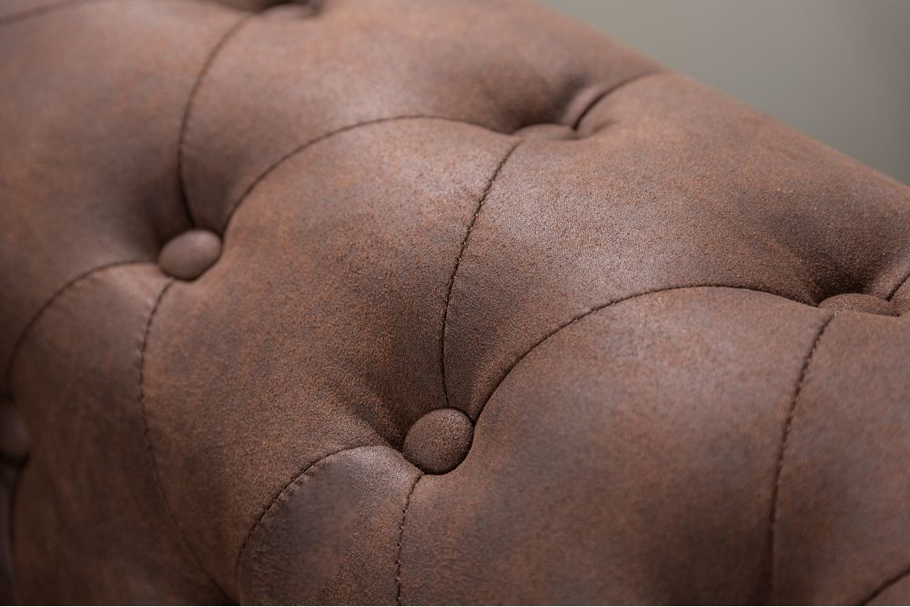 Presvlaka od mikrofibera u vintage smeđoj boji unosi osjećaj topline, ali i tajnu starinske patine, stvarajući ambijent u kojem je svaka siena bogata pričom. Tkanina, nježna na dodir, ali čvrsta i postojana, poziva na opuštanje i uživanje. Ukrasni gumbi i zakovice, smješteni u preciznim točkama, daju dojam nečega što nije samo namještaj, već i umjetnički komad koji se ponosi svojim detaljima.