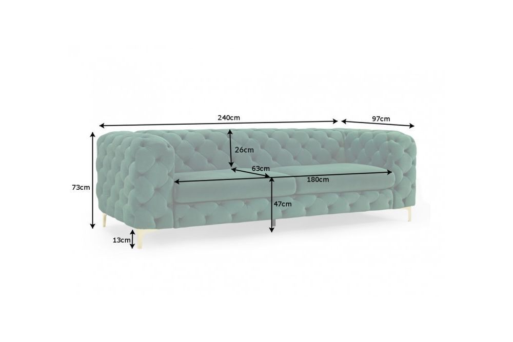 Sjedalo širine 180 cm, s udobnim jastucima i nosag oprugama, pruža nevjerojatnu udobnost, dok pravi naslon omogućava optimalnu podršku. Ukrasno šivanje u Chesterfield stilu donosi dašak klasične elegancije, usklađujući moderan dizajn s tradicionalnim šarmom. Svaka linija ove sofe reflektira bogatstvo stilskog naslijeđa, ali i suvremenog luksuza, stvarajući ravnotežu između opuštanja i prestiža.
