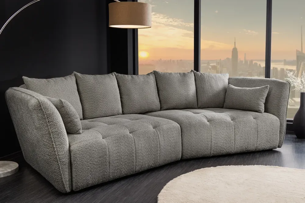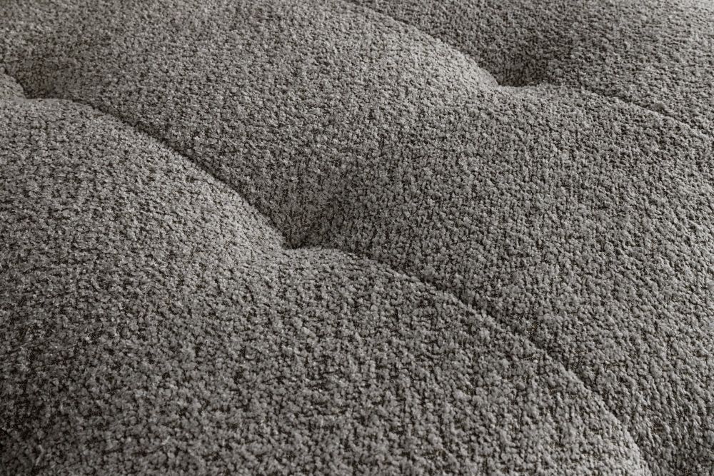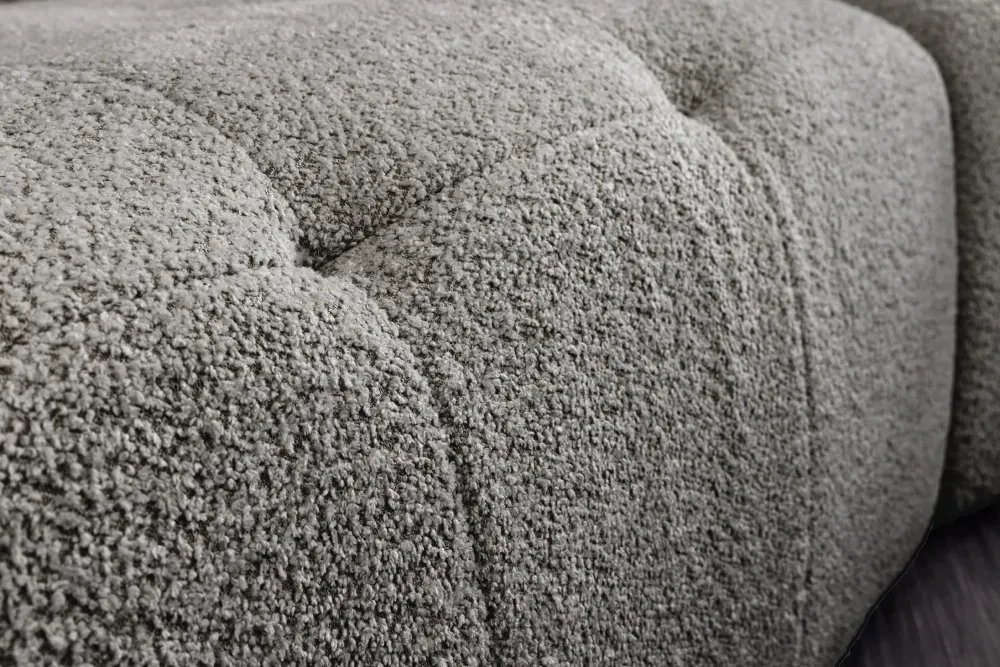 "Realeza Gris" u sofisticiranoj sivoj bouclé tkanini kombinira luksuz, udobnost i impresivan dizajn u jednom komadu. Prostrano sjedište dimenzija 210 x 75 cm i visina sjedenja od 46 cm pružaju obilje mjesta za opuštanje, druženje ili dugotrajne filmske maratone.