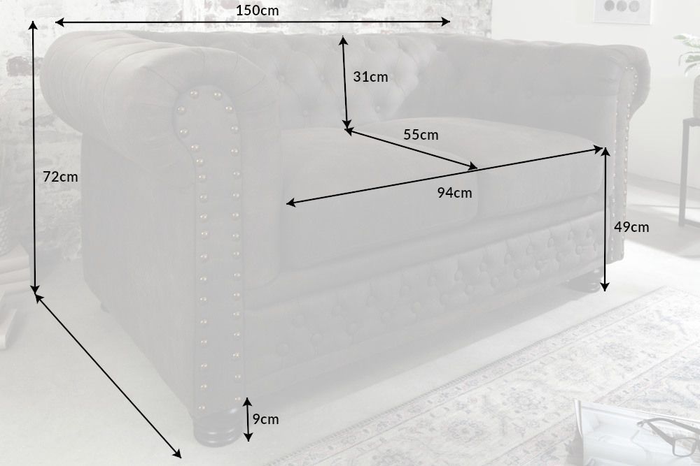 S dimenzijama od 150 cm širine, 72 cm visine i 88 cm dubine, dvosjed zauzima pravi prostor u sobi, donoseći s njime osjećaj ugodnosti i topline. Ova sofa nije samo komad namještaja; ona je pravi kutak u kojem svaki trenutak može postati čarolija.