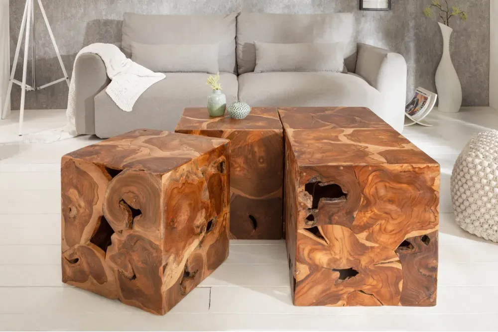Square Natural Tabure izrađen je od prirodnog tikovog drva i donosi savršenu ravnotežu rustikalnog šarma i svakodnevne funkcionalnosti. Masivna konstrukcija i čiste linije čine ga stabilnim, izdržljivim i vizualno toplim dodatkom svakom prostoru.
